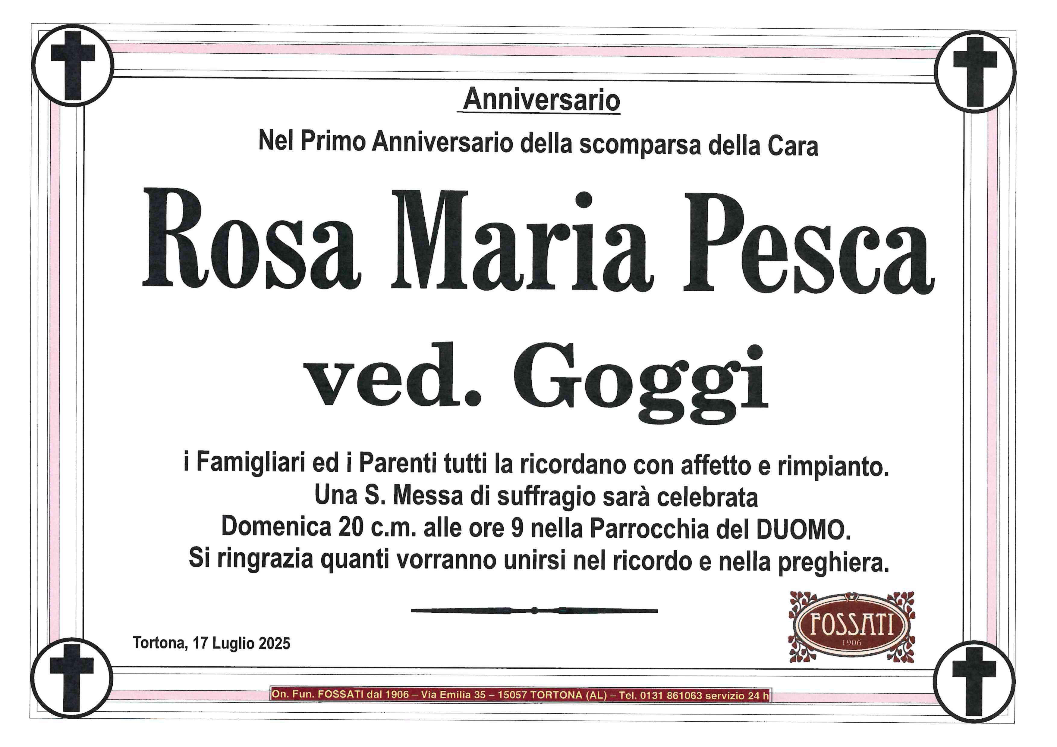 Carissima Rosetta voglio ricordarti con il tuo sorriso è la tua gentilezza ,ormai sarai arrivata anche tu nel bel giardino dove incontrerai la mia piccola Alessia ,ti chiedo di abbracciarla da parte mia. Un abbraccio a te Cristina e tutta la tua famiglia. Sentite condoglianze