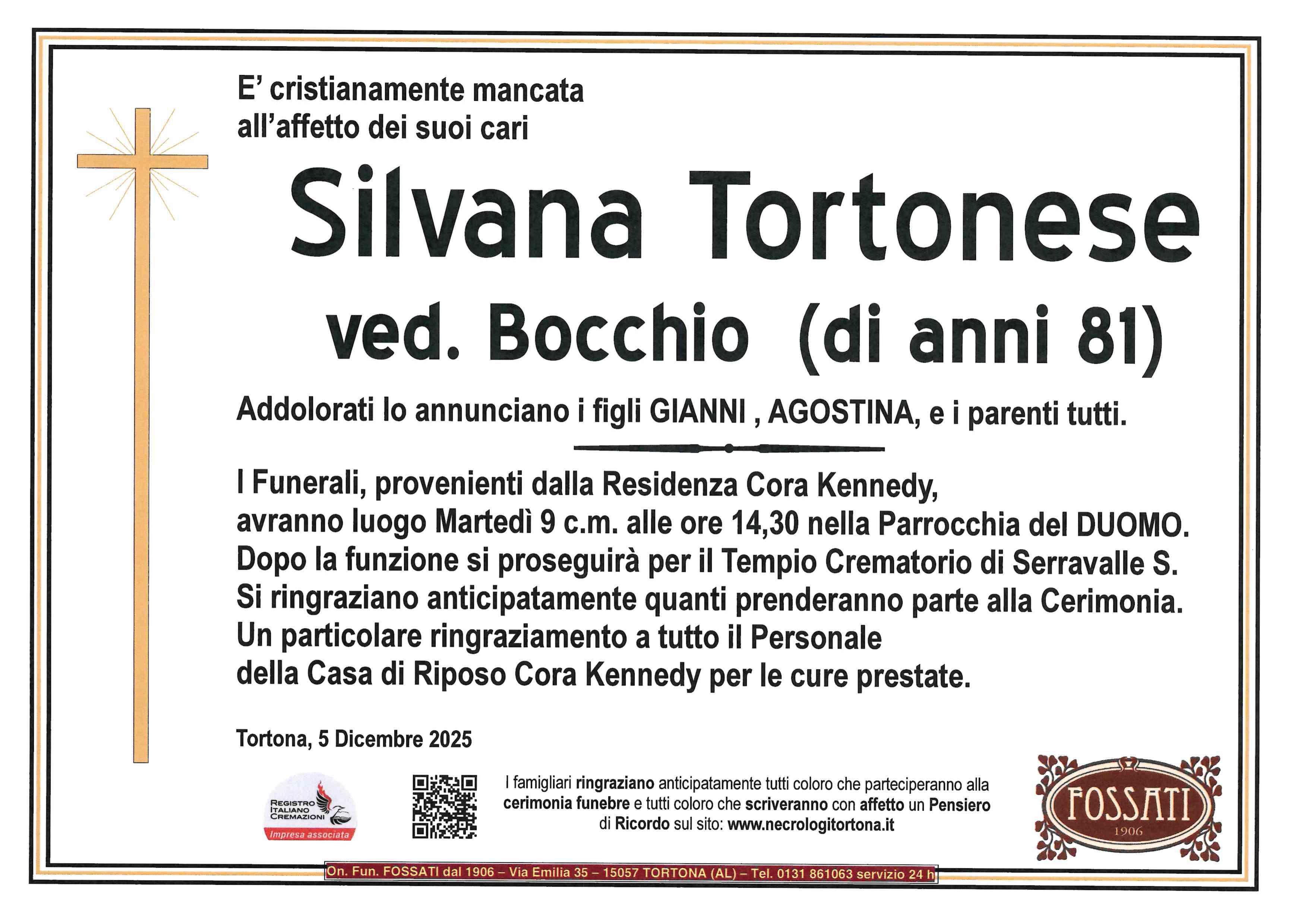 I familiari ringraziano anticipatamente tutti coloro che parteciperanno alla cerimonia funebre