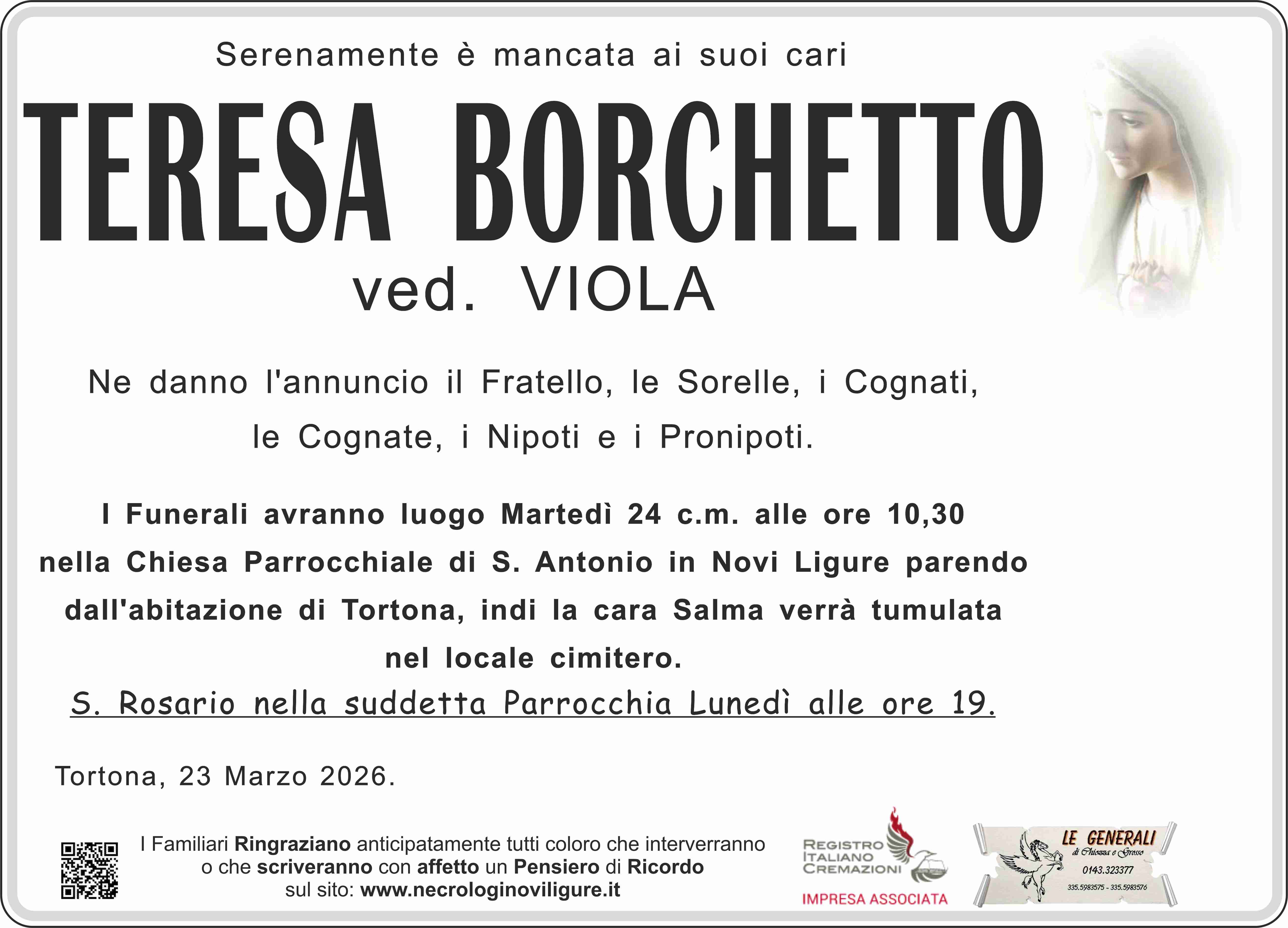 Clicca il pulsante qui sotto per visualizzare sulla mappa il luogo dove riposa Teresa Borchetto Viola.