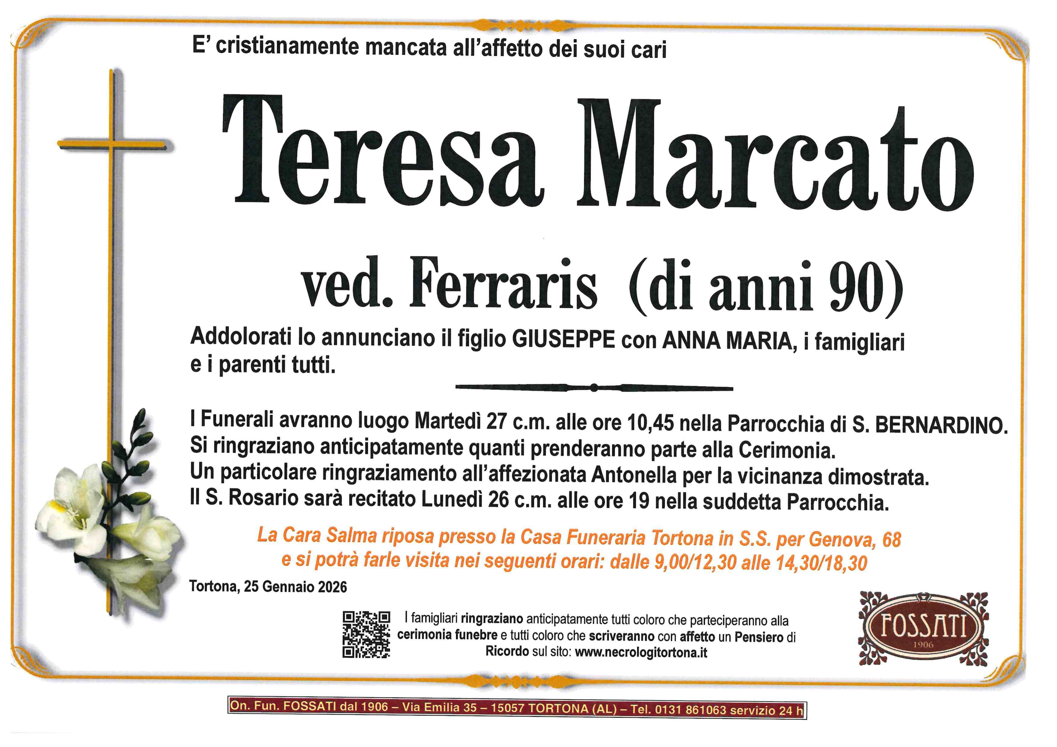 I familiari ringraziano anticipatamente tutti coloro che parteciperanno alla cerimonia funebre