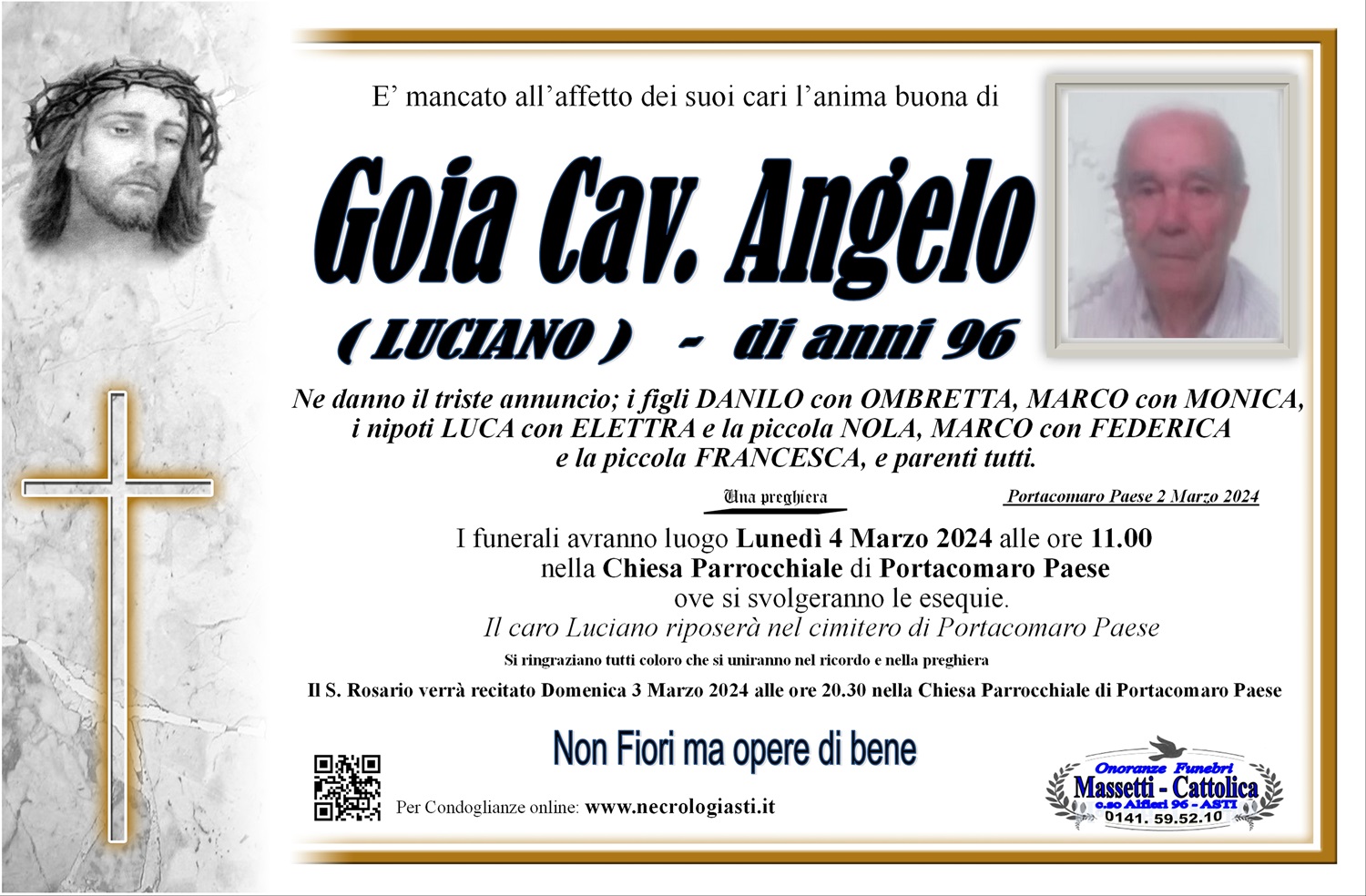 I familiari ringraziano anticipatamente tutti coloro che parteciperanno alla cerimonia funebre