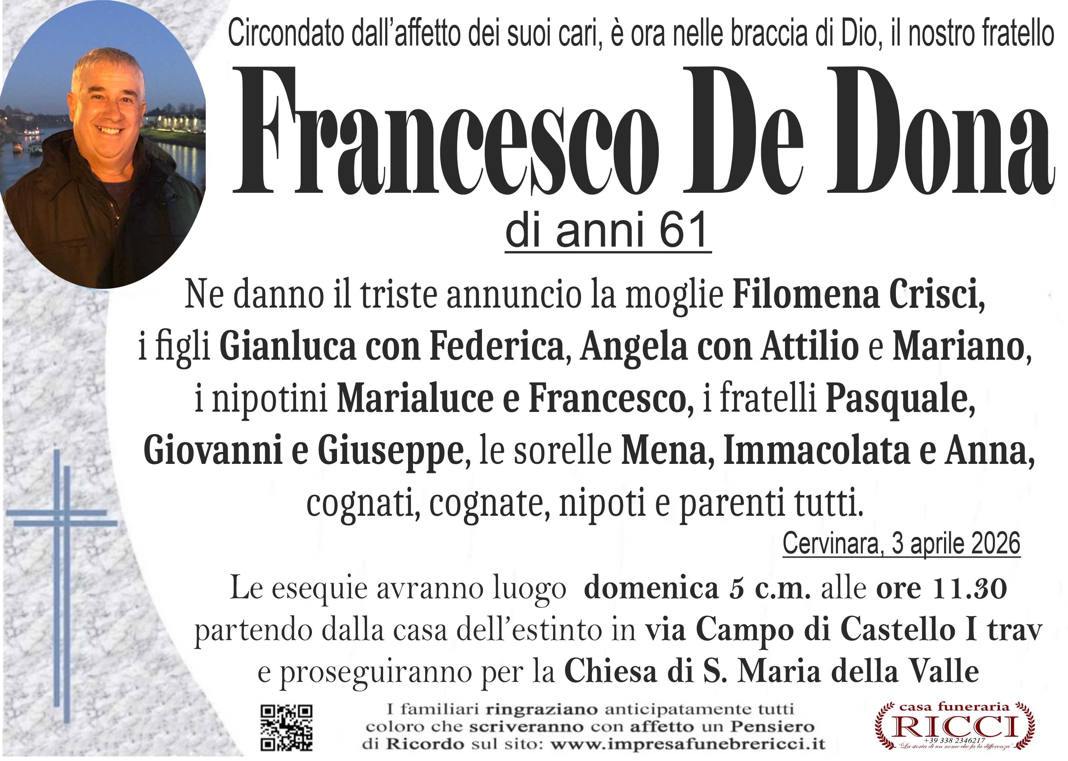 I familiari ringraziano anticipatamente tutti coloro che parteciperanno alla cerimonia funebre