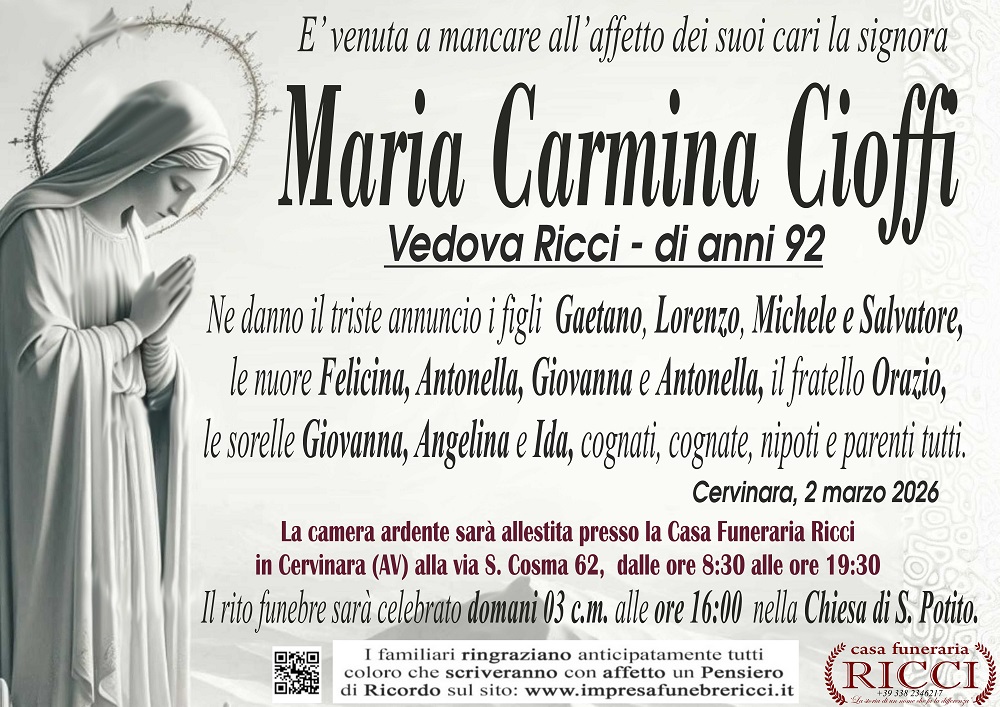 I familiari ringraziano anticipatamente tutti coloro che parteciperanno alla cerimonia funebre