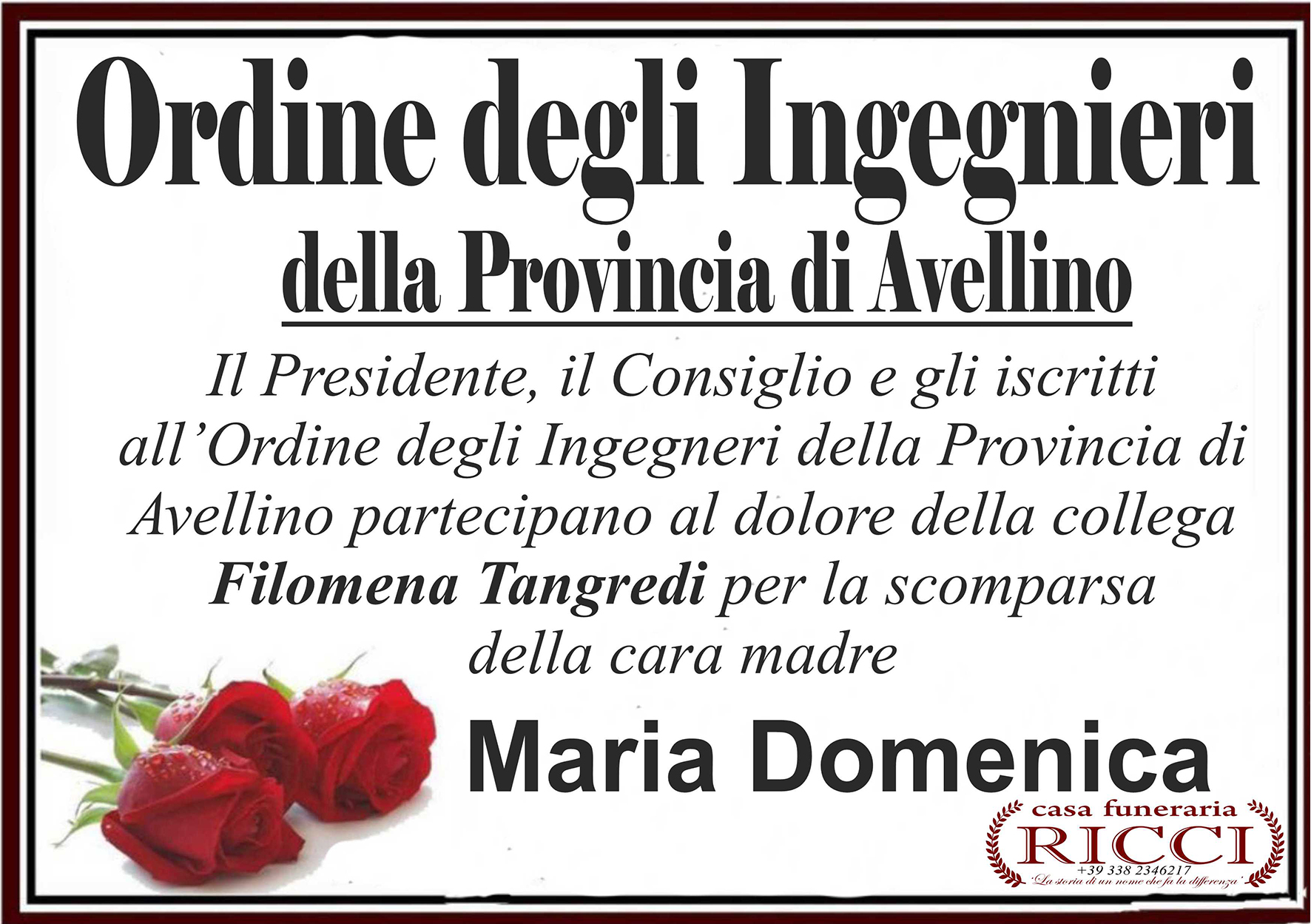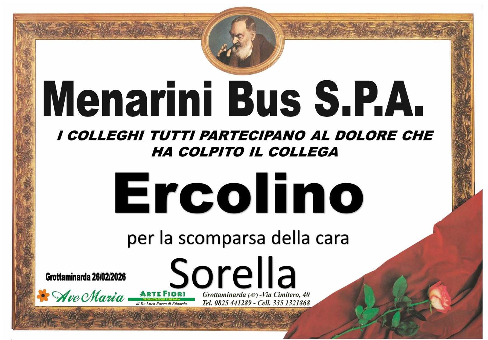 I familiari ringraziano anticipatamente tutti coloro che parteciperanno alla cerimonia funebre