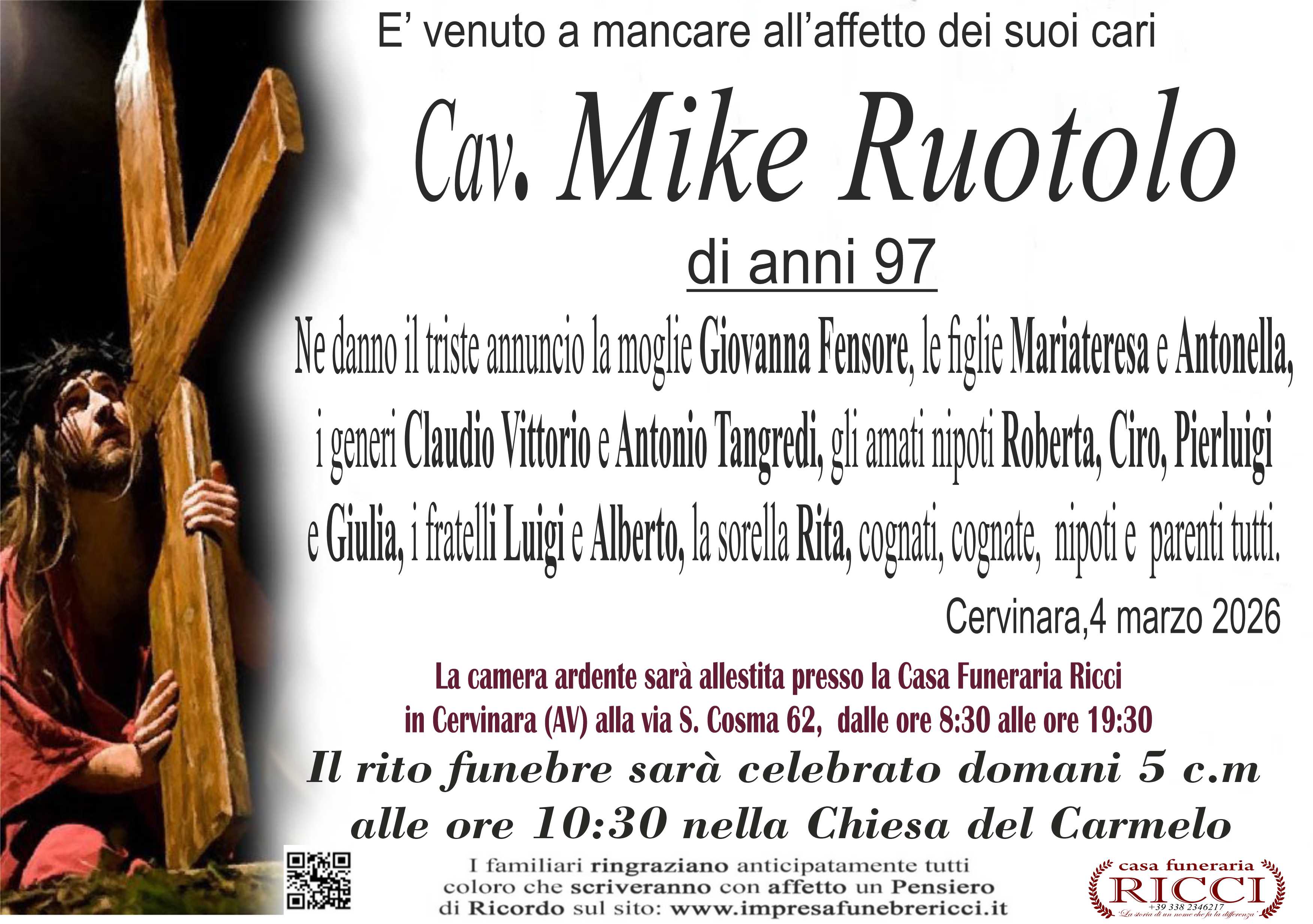 I familiari ringraziano anticipatamente tutti coloro che parteciperanno alla cerimonia funebre