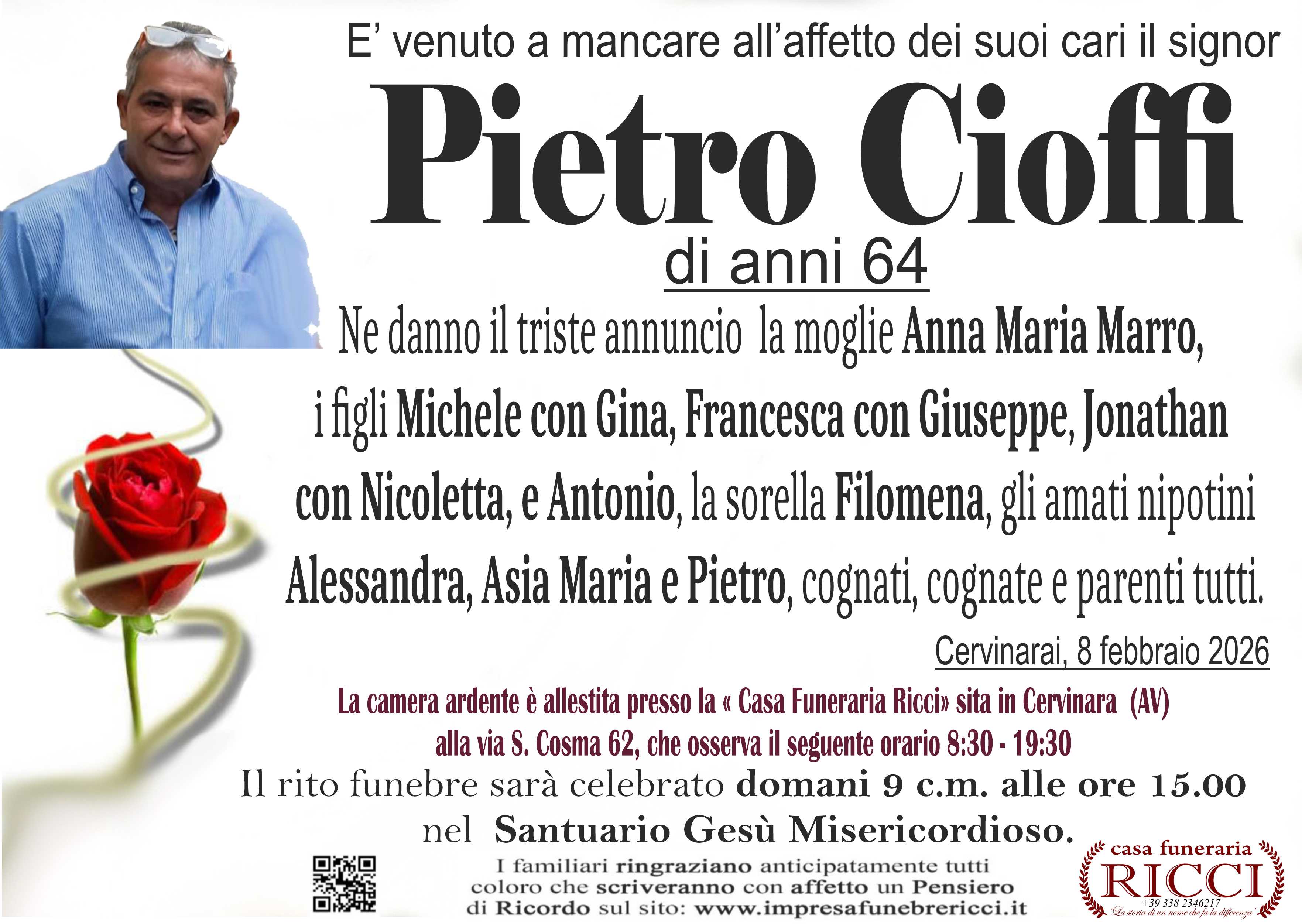 I familiari ringraziano anticipatamente tutti coloro che parteciperanno alla cerimonia funebre