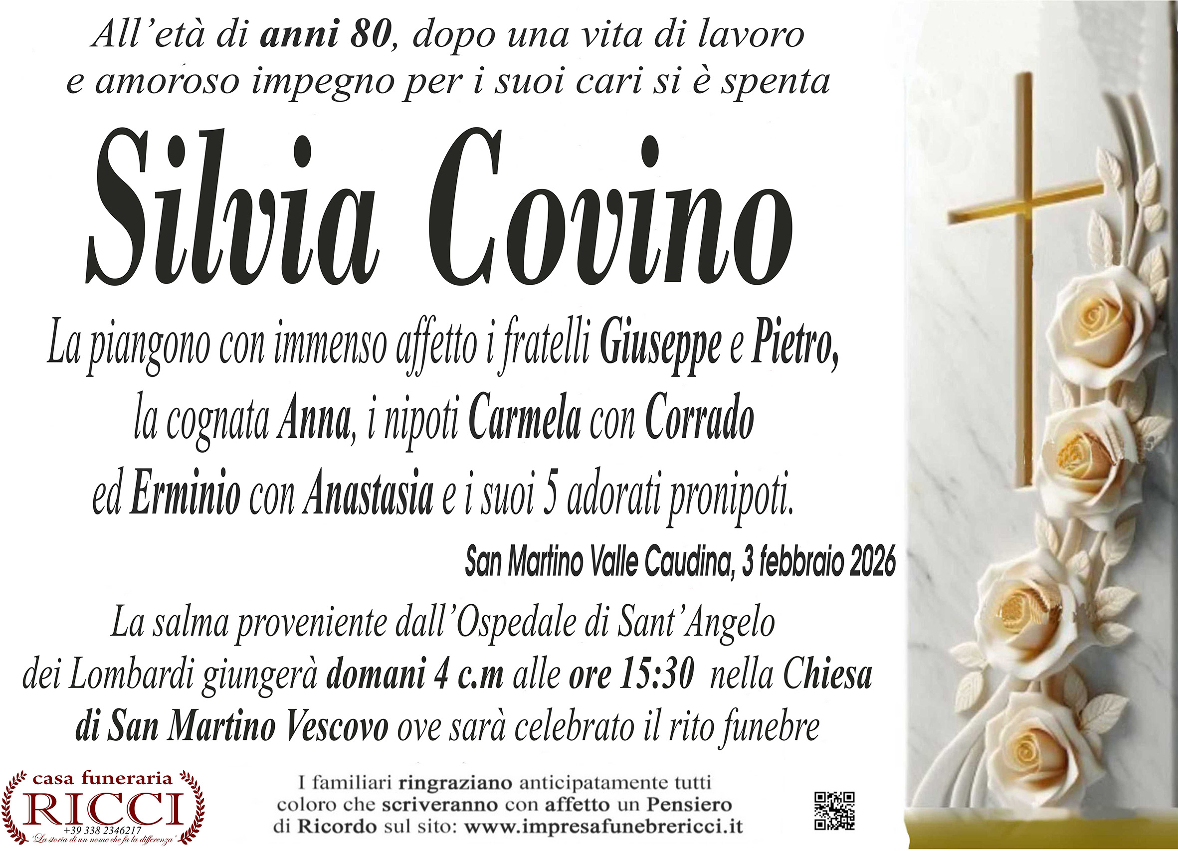 I familiari ringraziano anticipatamente tutti coloro che parteciperanno alla cerimonia funebre
