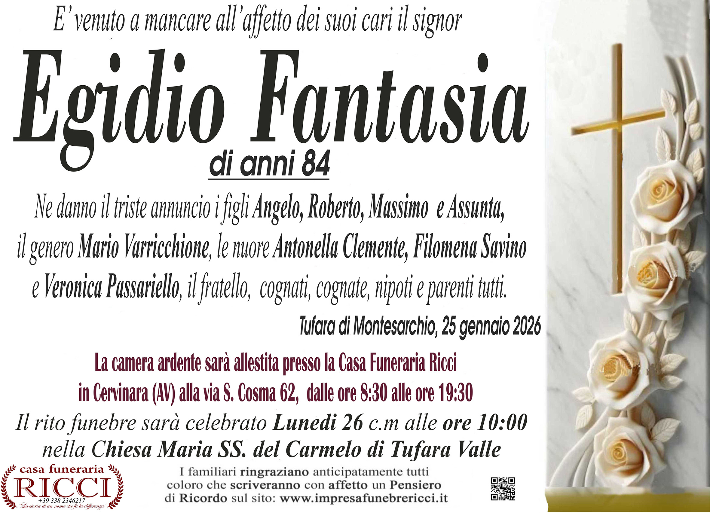 I familiari ringraziano anticipatamente tutti coloro che parteciperanno alla cerimonia funebre