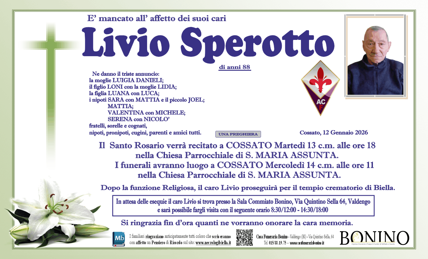 I familiari ringraziano anticipatamente tutti coloro che parteciperanno alla cerimonia funebre