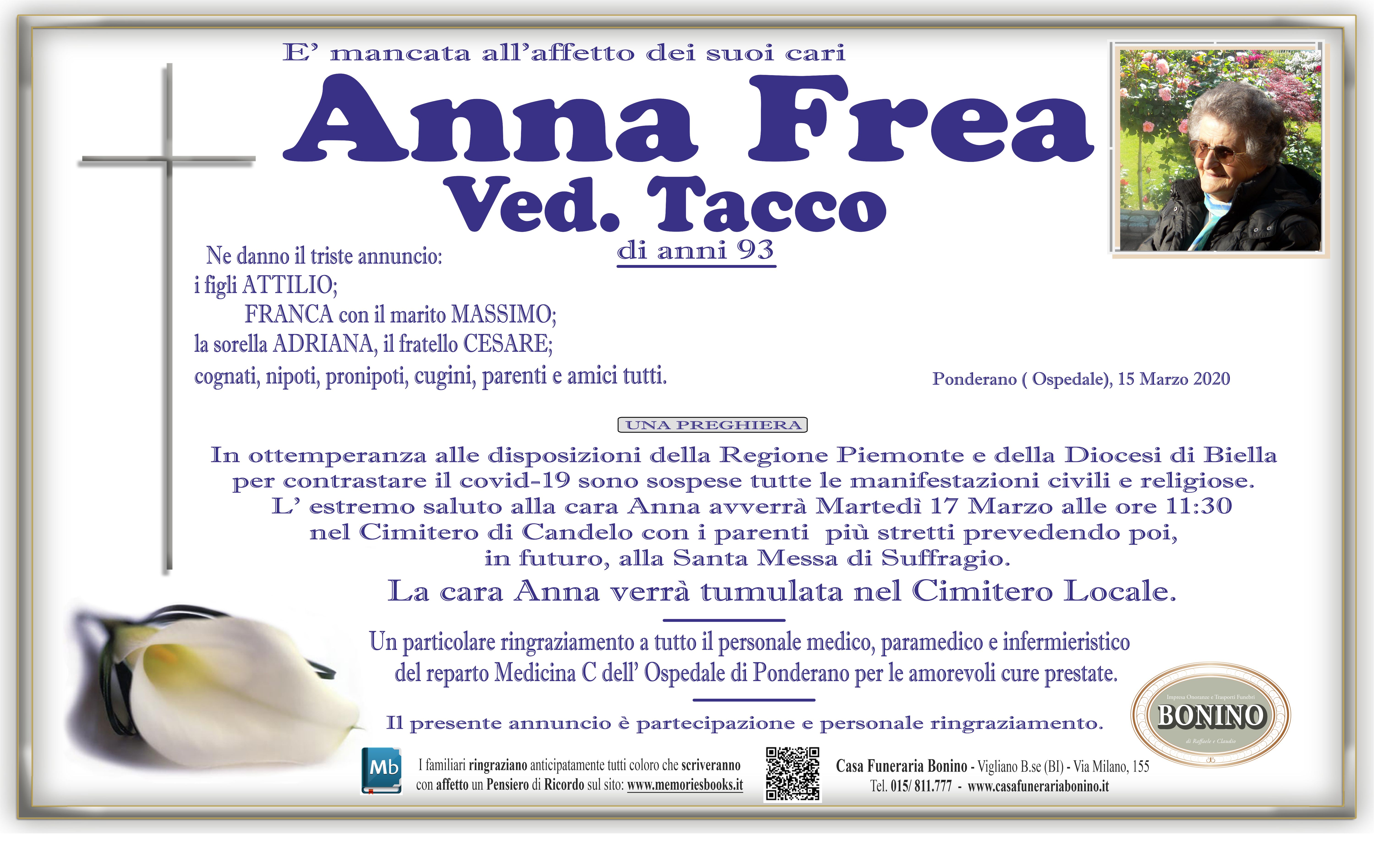 Carissimi Attilio e Franca,in questo momento di grande criticità per tutti ricorriamo alla tecnologia per esprimere la nostra vicinanza e condivisione al vostro dolore. Custodiremo SEMPRE nel cuore il ricordo di Mamma Anna che con la sua dolcezza sapeva farsi voler bene da tutti. Con la speranza che questo angoscioso periodo finisca presto e poterci così riabbracciare fisicamente con affetto fraterno.