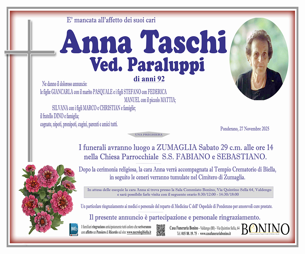 I familiari ringraziano anticipatamente tutti coloro che parteciperanno alla cerimonia funebre