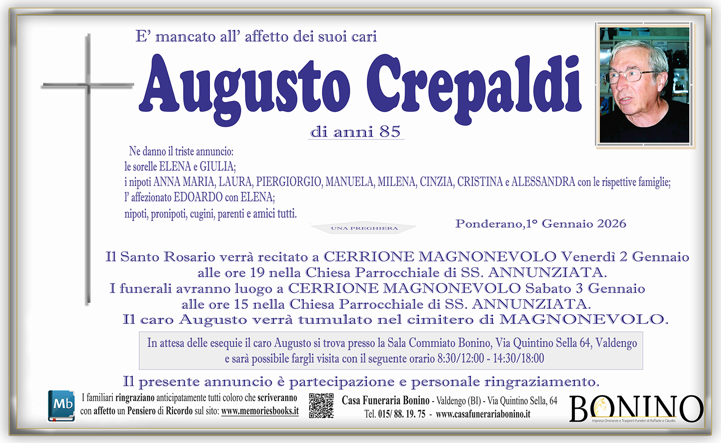 I familiari ringraziano anticipatamente tutti coloro che parteciperanno alla cerimonia funebre
