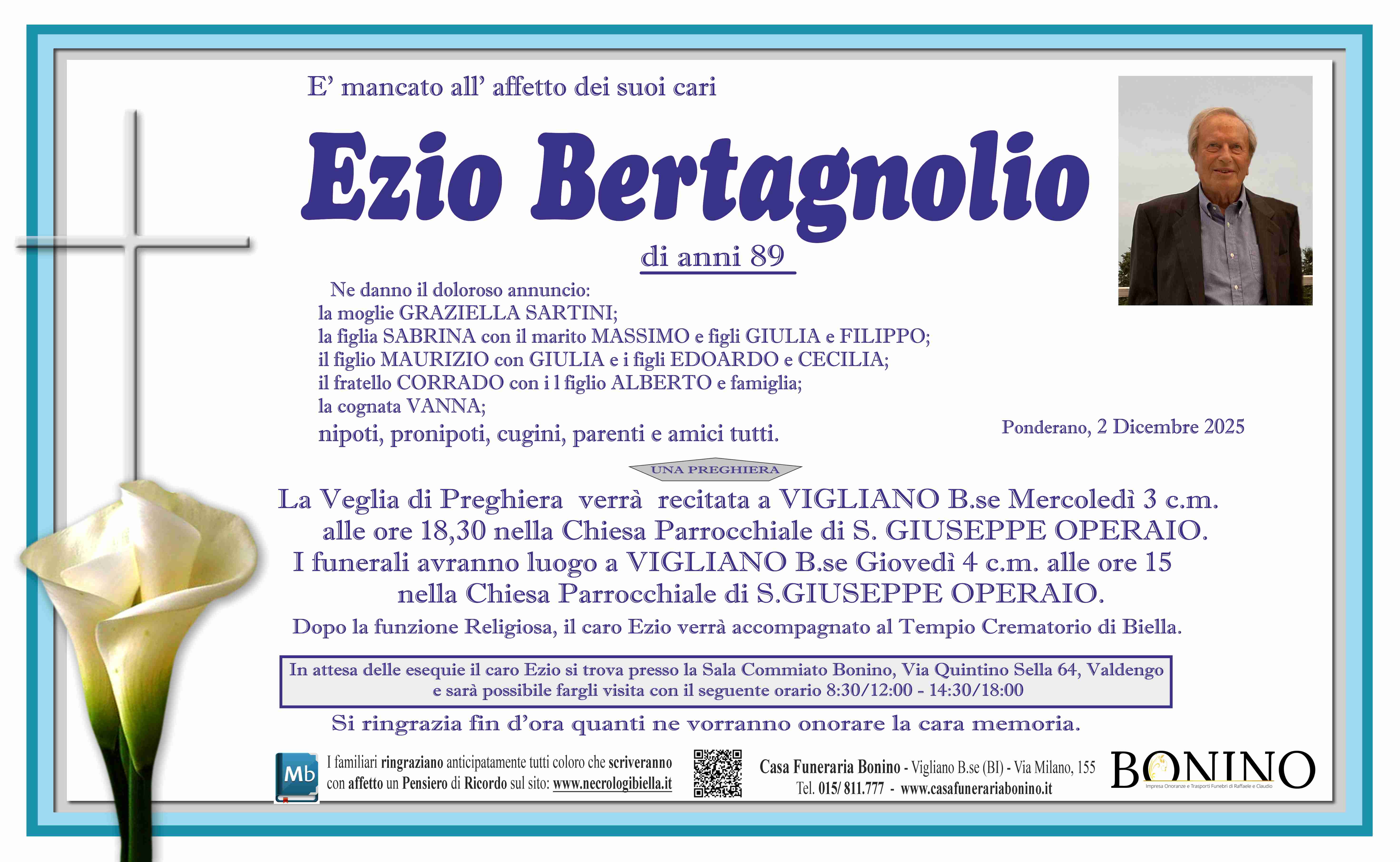 Addolorato e con grande dispiacere ho appreso della scomparsa di Ezio, amico e compagno di tante serate musicali passate insieme. Alla moglie Graziella e familiari tutti porgo le mie più sentite condoglianze. Con sincera amicizia Walter Pellegrino
