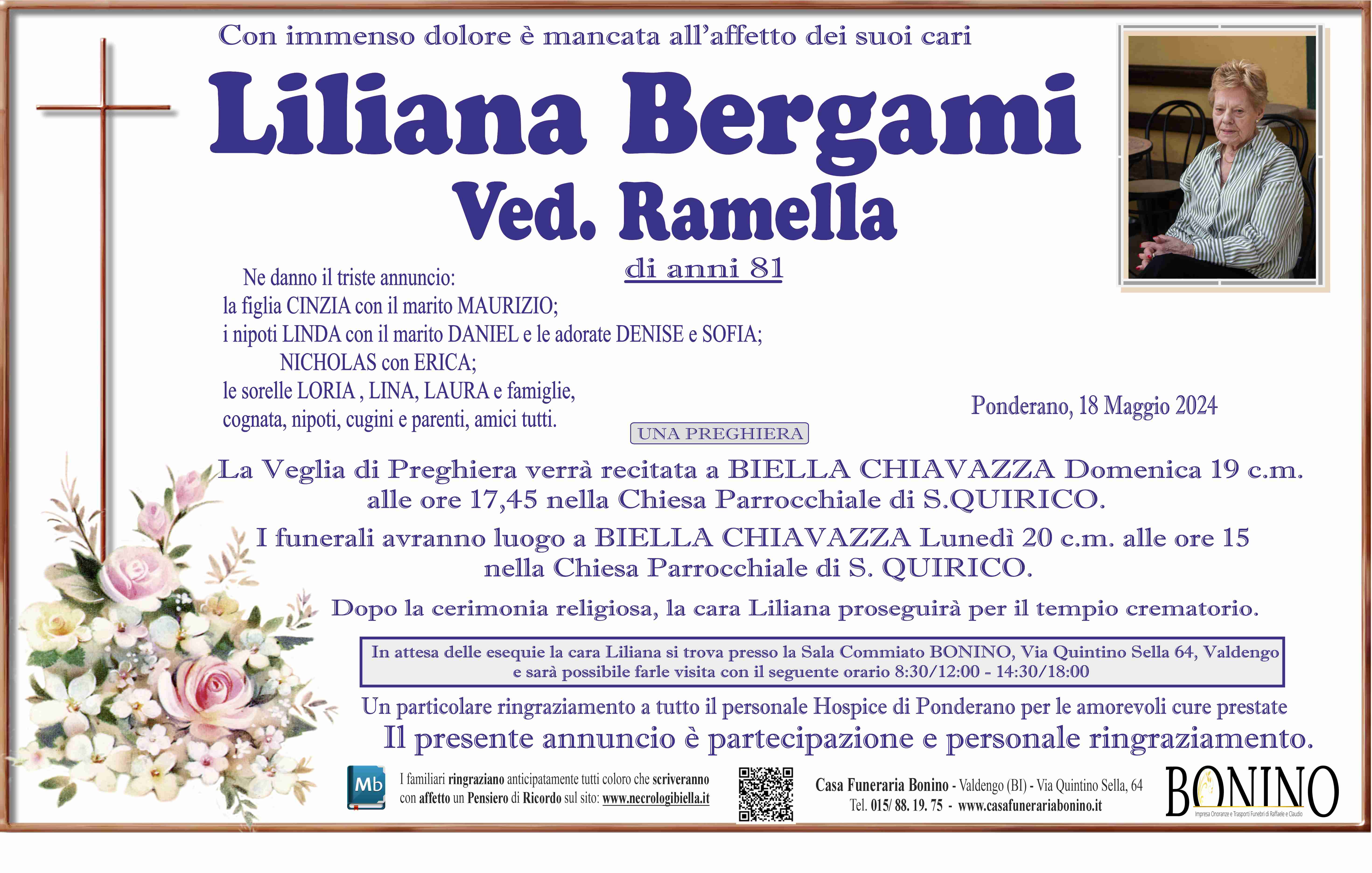 I familiari ringraziano anticipatamente tutti coloro che parteciperanno alla cerimonia funebre