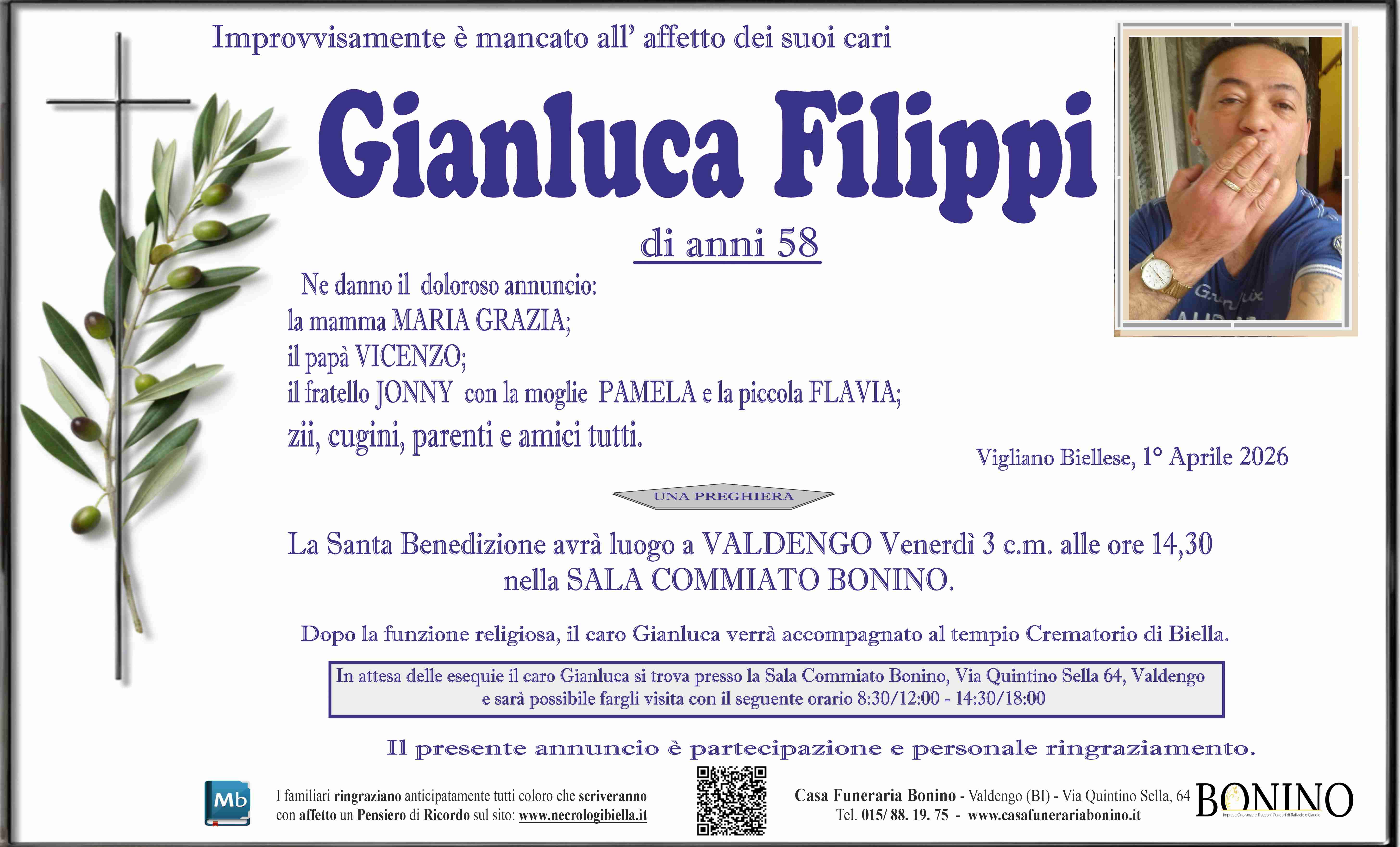 I familiari ringraziano anticipatamente tutti coloro che parteciperanno alla cerimonia funebre