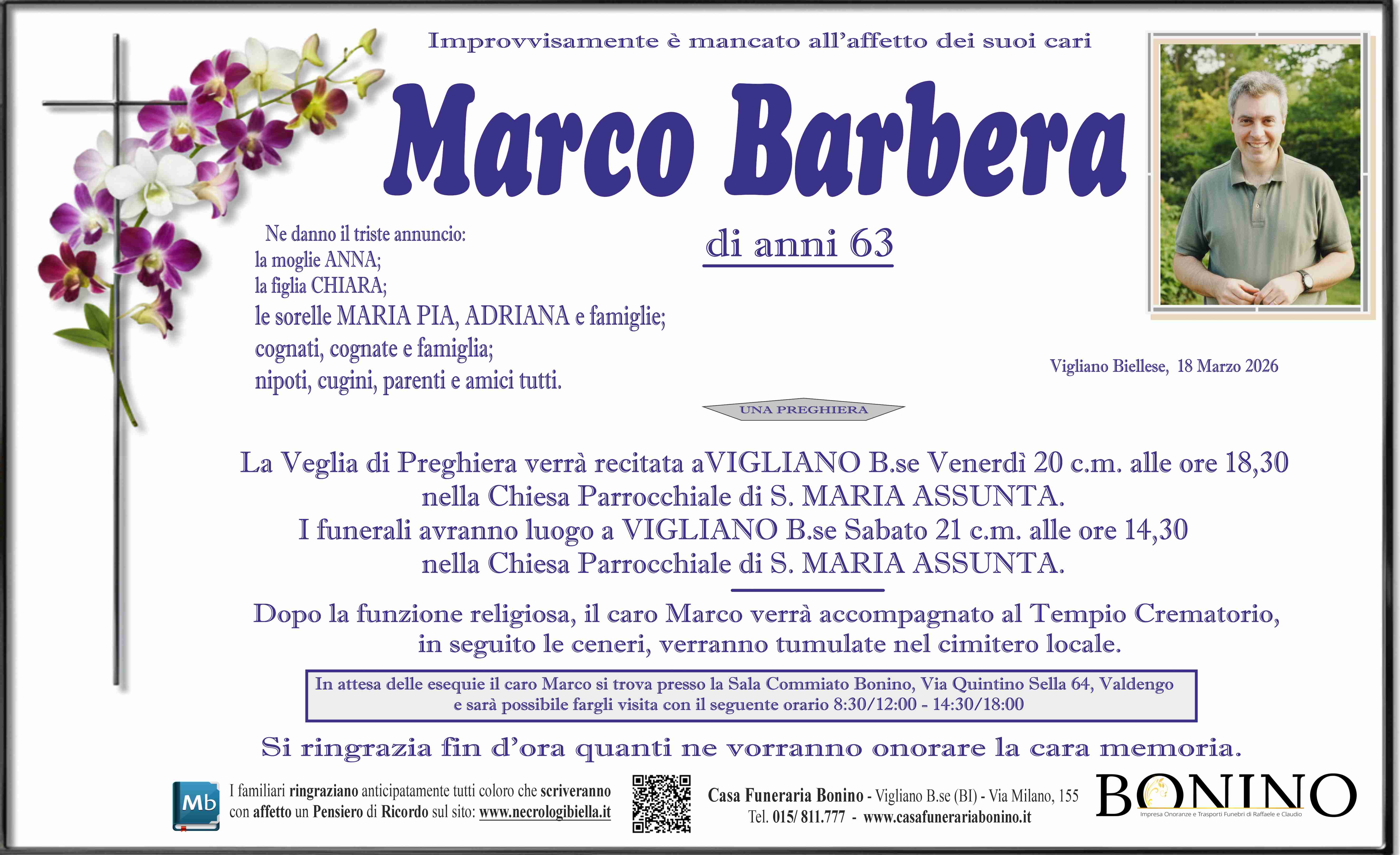 I familiari ringraziano anticipatamente tutti coloro che parteciperanno alla cerimonia funebre
