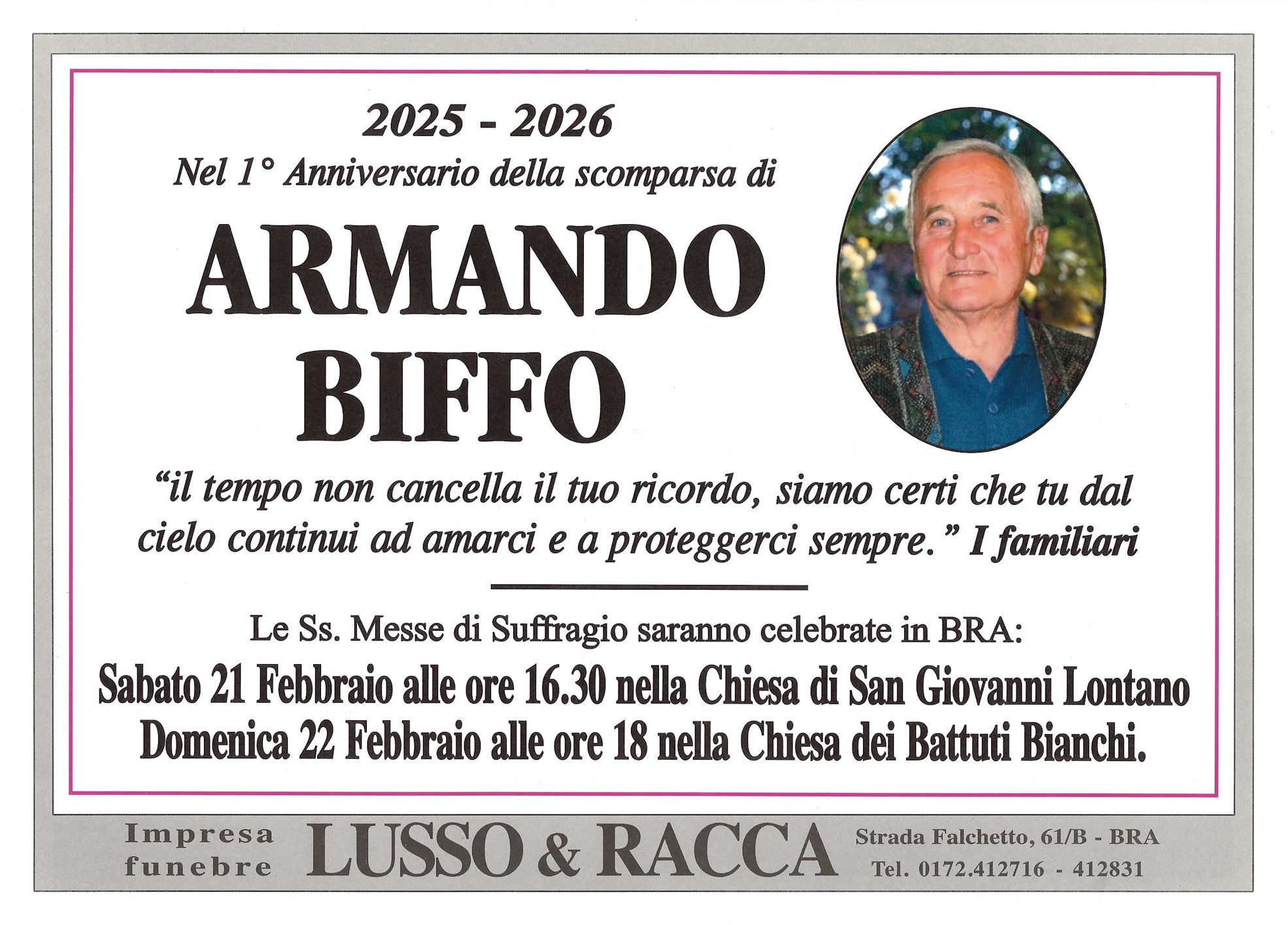 Condoglianze a tutta la famiglia Biffo per la prematura scomparsa di Armando Biffo Vi sono vicina con le preghiere e con il mio affetto ...