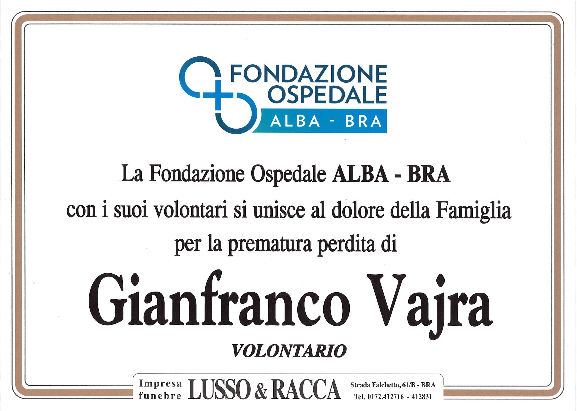 I familiari ringraziano anticipatamente tutti coloro che parteciperanno alla cerimonia funebre