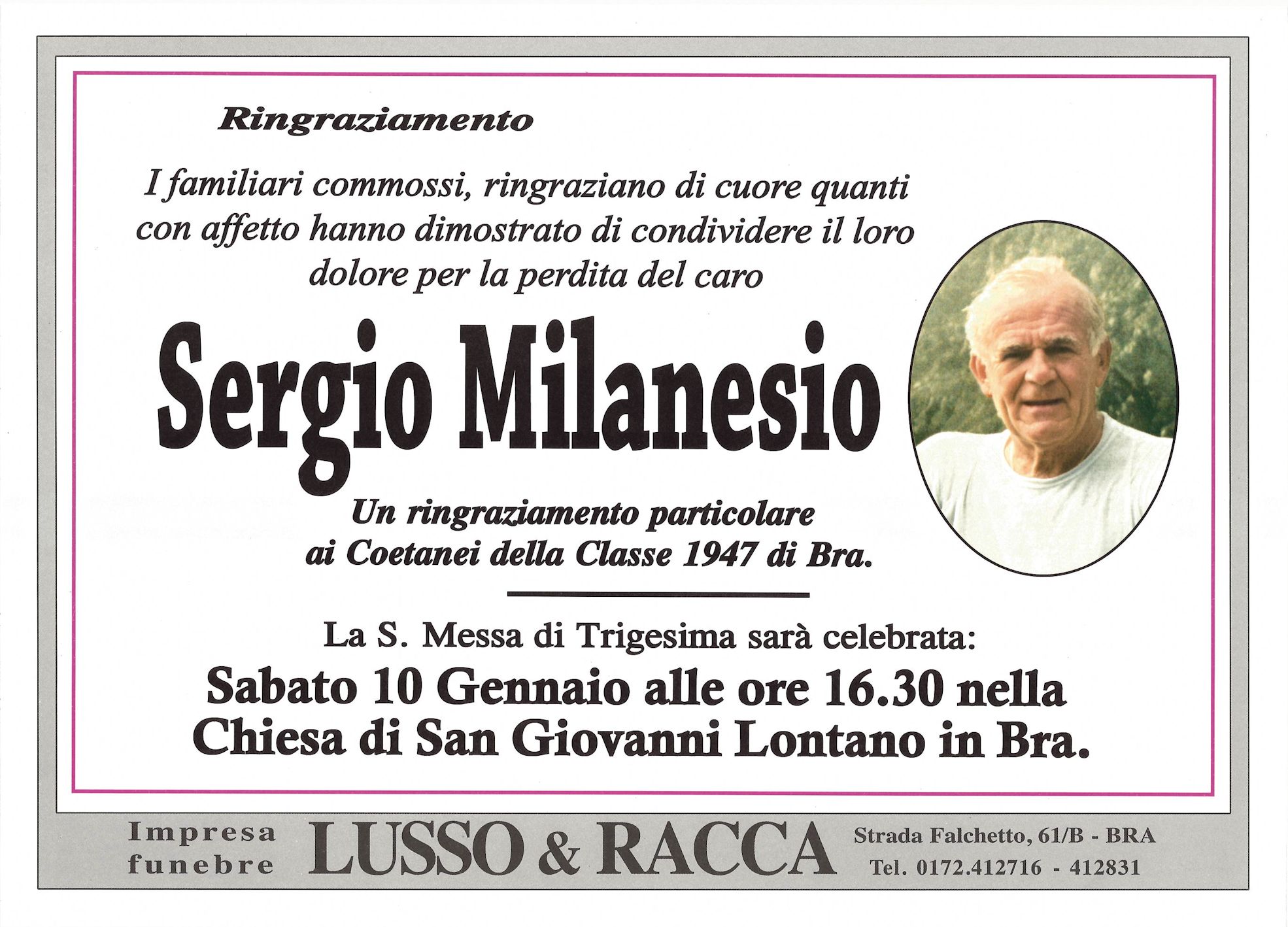 I familiari ringraziano anticipatamente tutti coloro che parteciperanno alla cerimonia funebre
