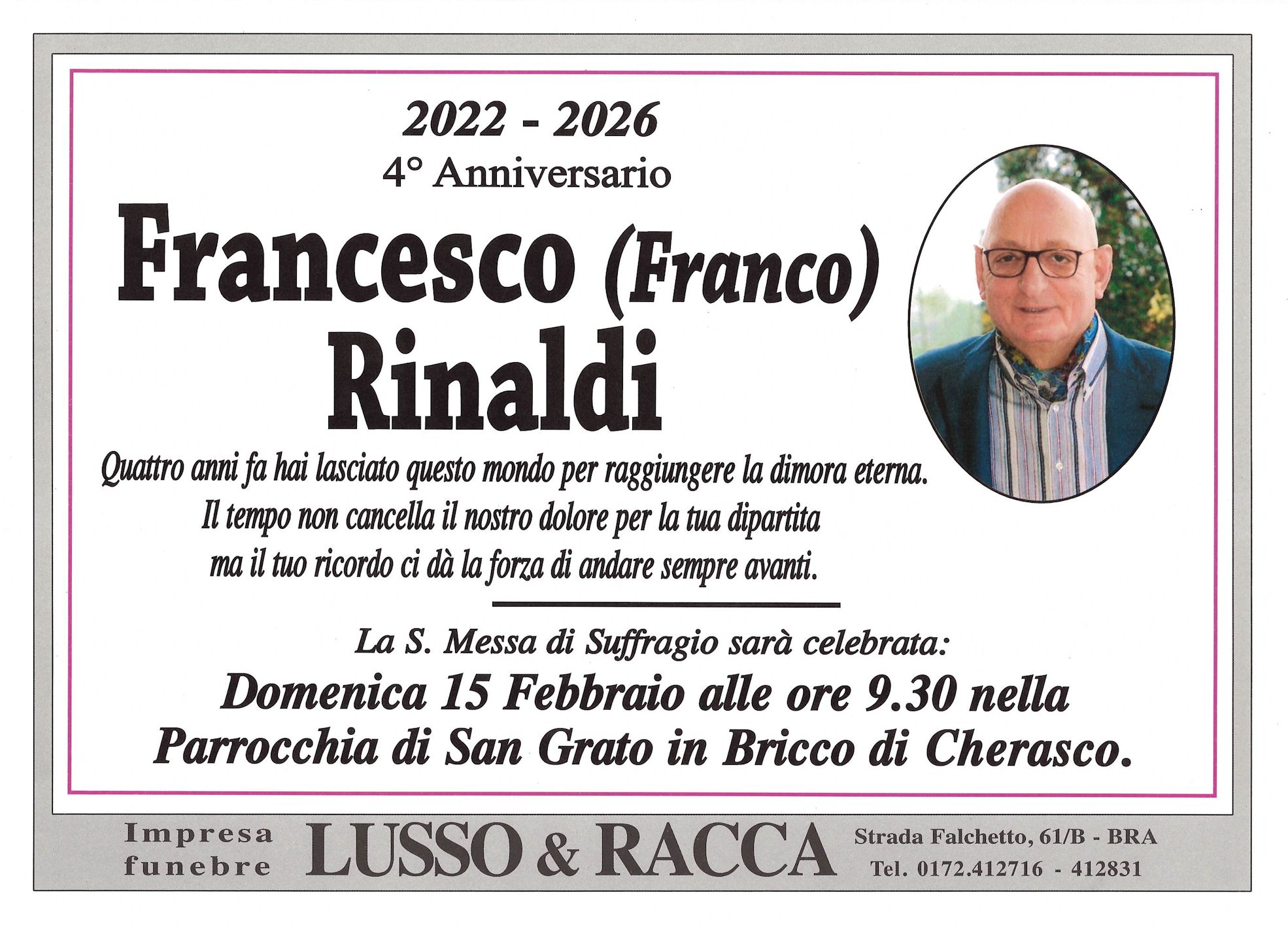 I familiari ringraziano anticipatamente tutti coloro che parteciperanno alla cerimonia funebre