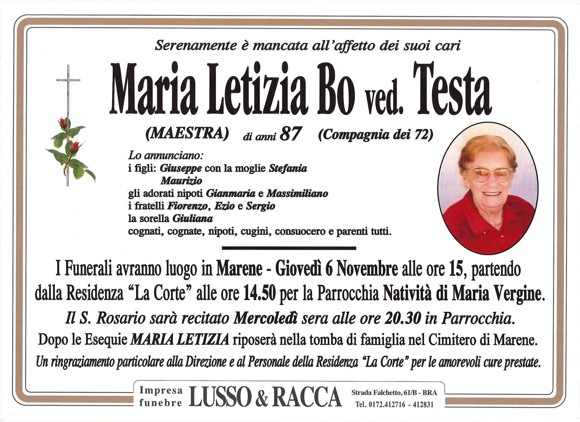 Con dolore apprendo la notizia della partenza della maestra Testa, un'istituzione per gli alunni marenesi di un tempo, nonché cara amica di mia mamma. Ha saputo unire la professionalità all'ironia, lasciandomi un ottimo ricordo! Una preghiera per lei e un abbraccio a tutti voi che ne piangere la mancanza.
