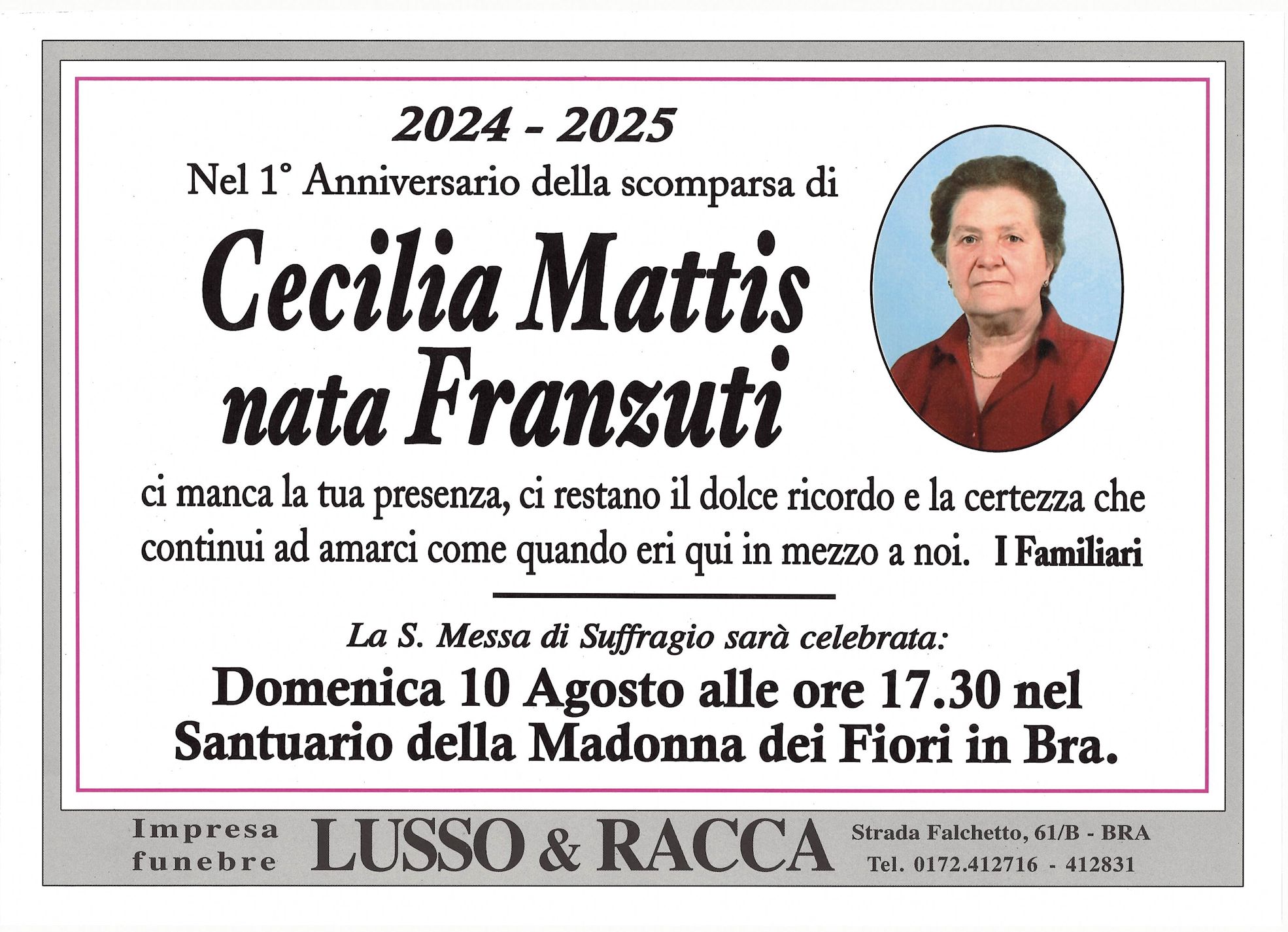 I familiari ringraziano anticipatamente tutti coloro che parteciperanno alla cerimonia funebre