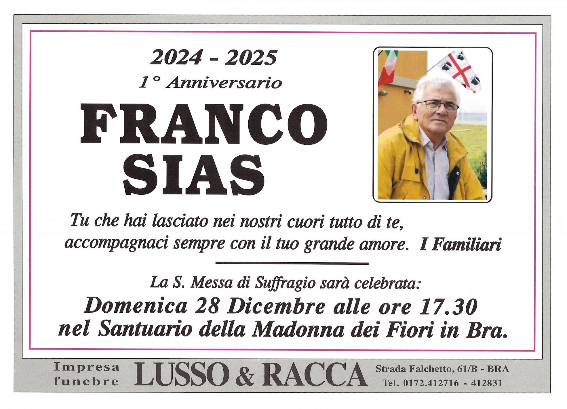 I familiari ringraziano anticipatamente tutti coloro che parteciperanno alla cerimonia funebre