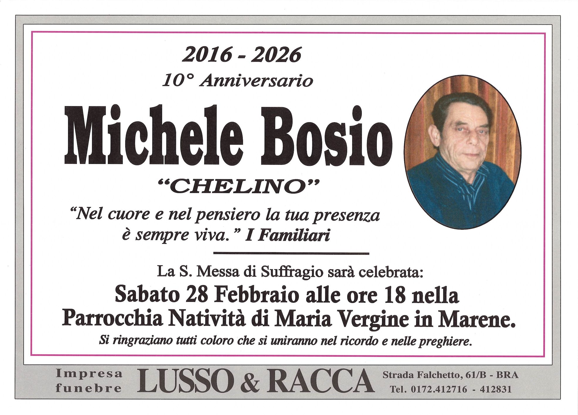 I familiari ringraziano anticipatamente tutti coloro che parteciperanno alla cerimonia funebre