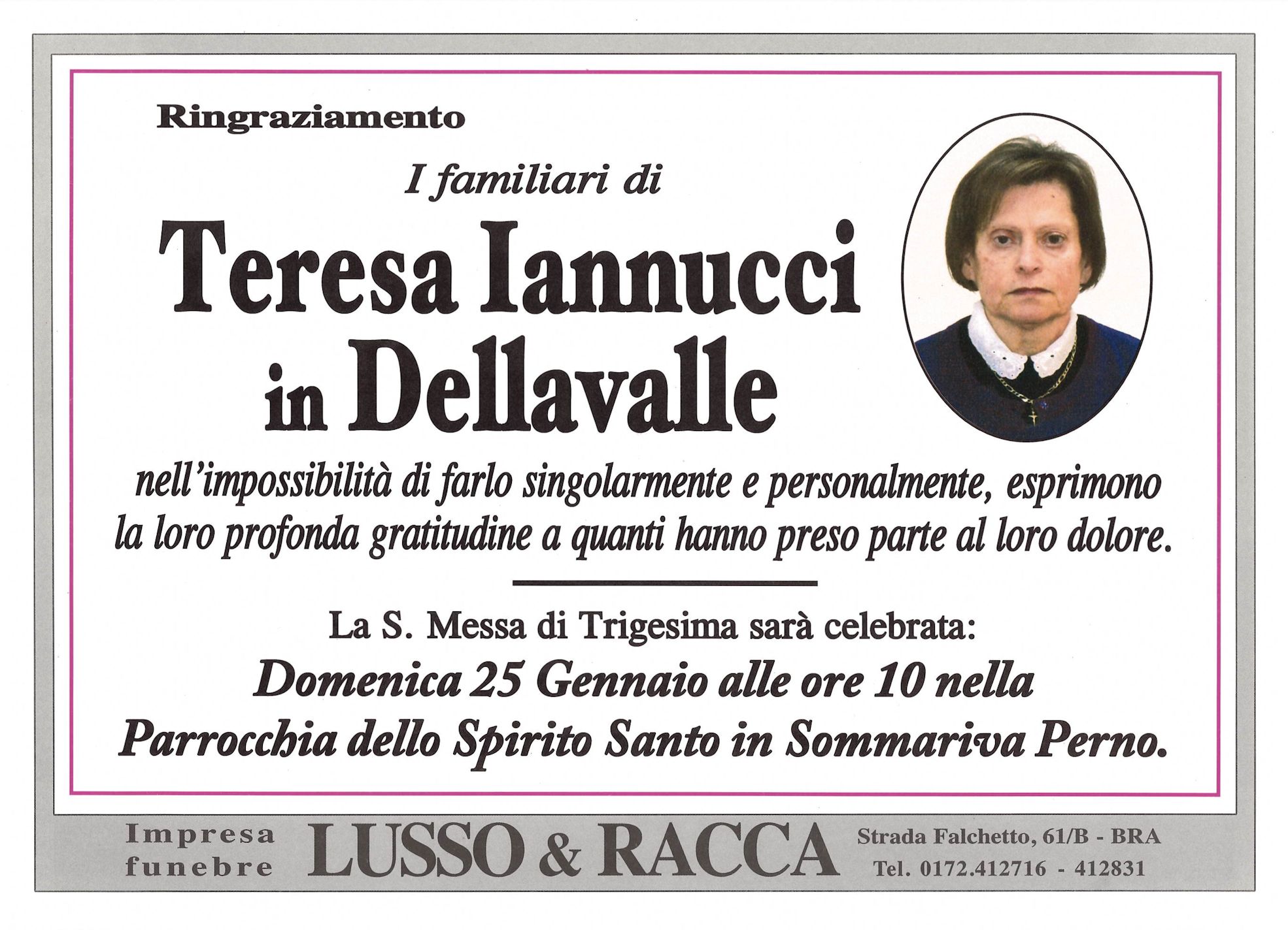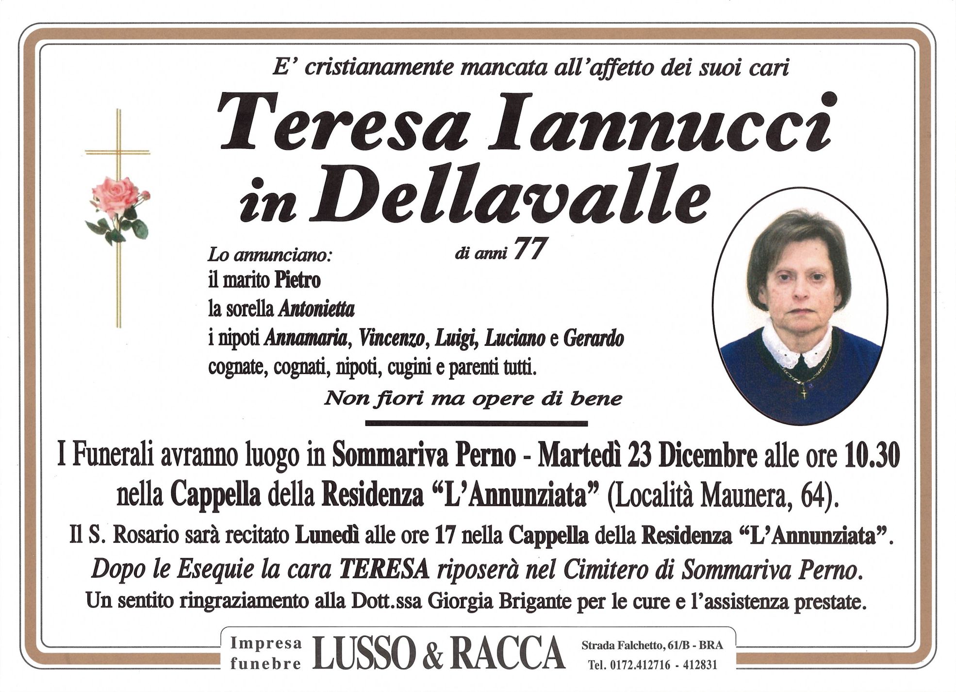I familiari ringraziano anticipatamente tutti coloro che parteciperanno alla cerimonia funebre