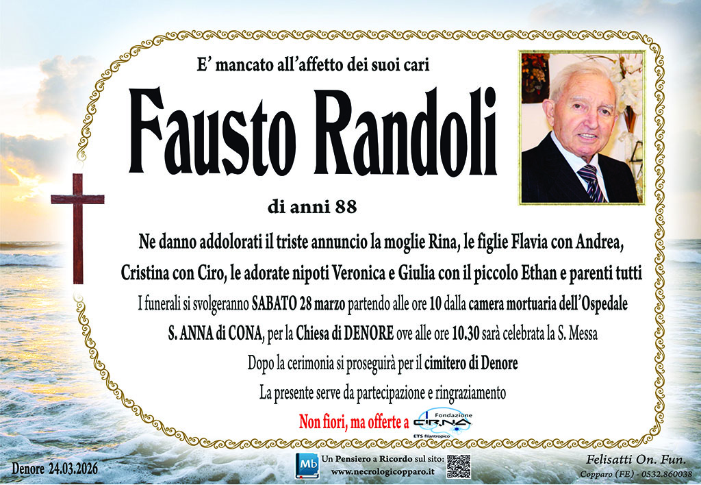 I familiari ringraziano anticipatamente tutti coloro che parteciperanno alla cerimonia funebre