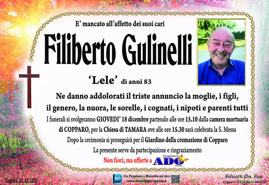 I familiari ringraziano anticipatamente tutti coloro che parteciperanno alla cerimonia funebre