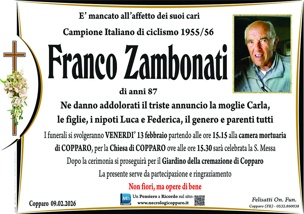 Ho conosciuto il sig. Franco in Comune di Copparo quando Lui era assessore, è sempre stato molto gentile e disponibile al dialogo; esprimo le mie più sentite condoglianze a tutta la sua famiglia.