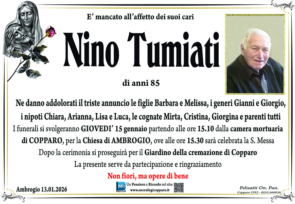 I familiari ringraziano anticipatamente tutti coloro che parteciperanno alla cerimonia funebre