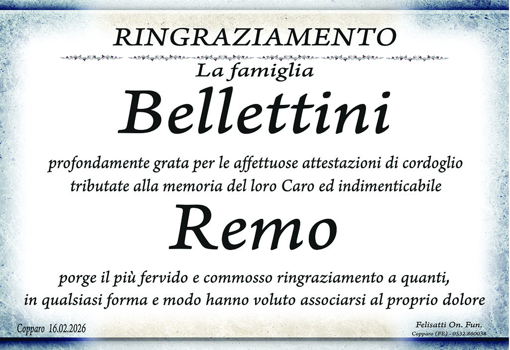 SENTITE CONDOGLIANZE AI FAMILIARI DI REMO, CHE ORA RIPOSI IN PACE. DONATA SALMI E ANDREA CORNETTI.