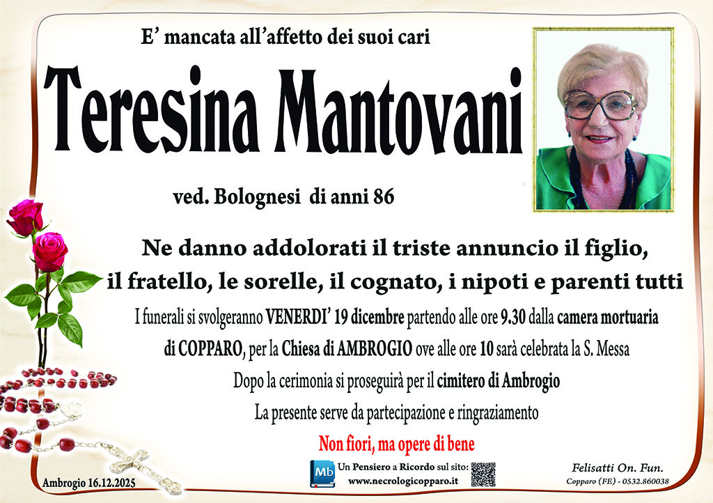 Clicca il pulsante qui sotto per visualizzare sulla mappa il luogo dove riposa Teresina Mantovani Bolognesi.