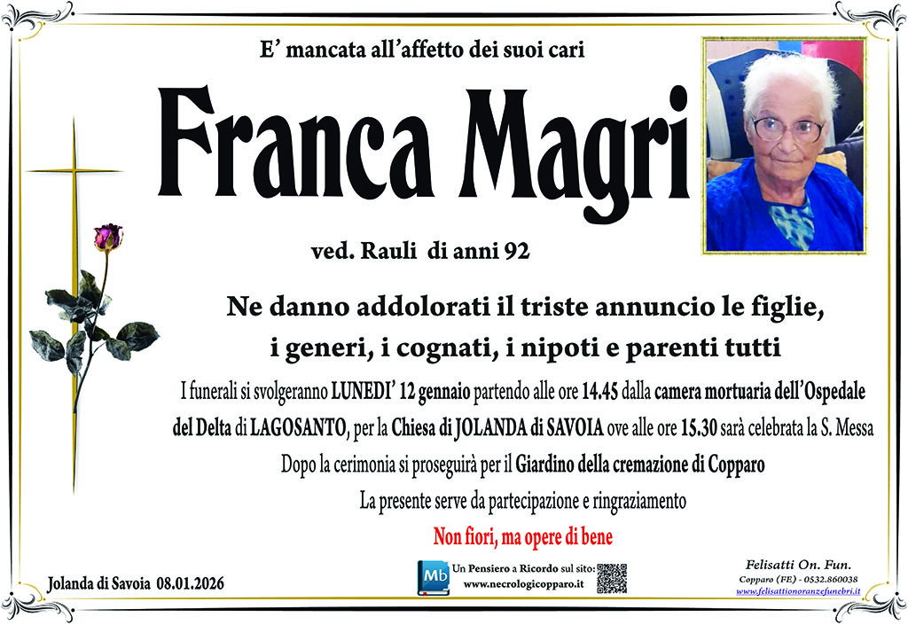 I familiari ringraziano anticipatamente tutti coloro che parteciperanno alla cerimonia funebre