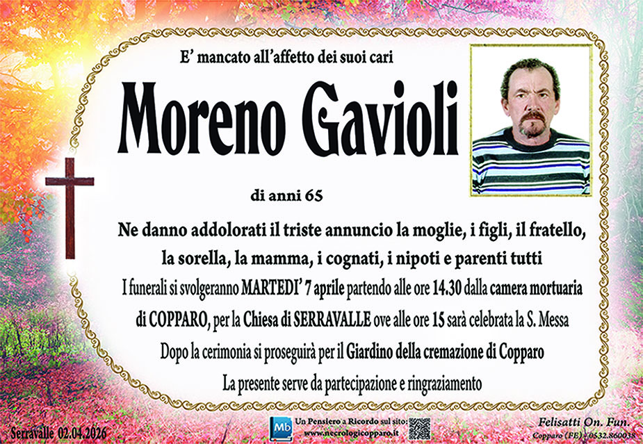 Condoglianze e un forte abbraccio a tutta la famiglia Gavioli per questa grave perdita .. Ciao Moreno che la terra ti sia lieve.