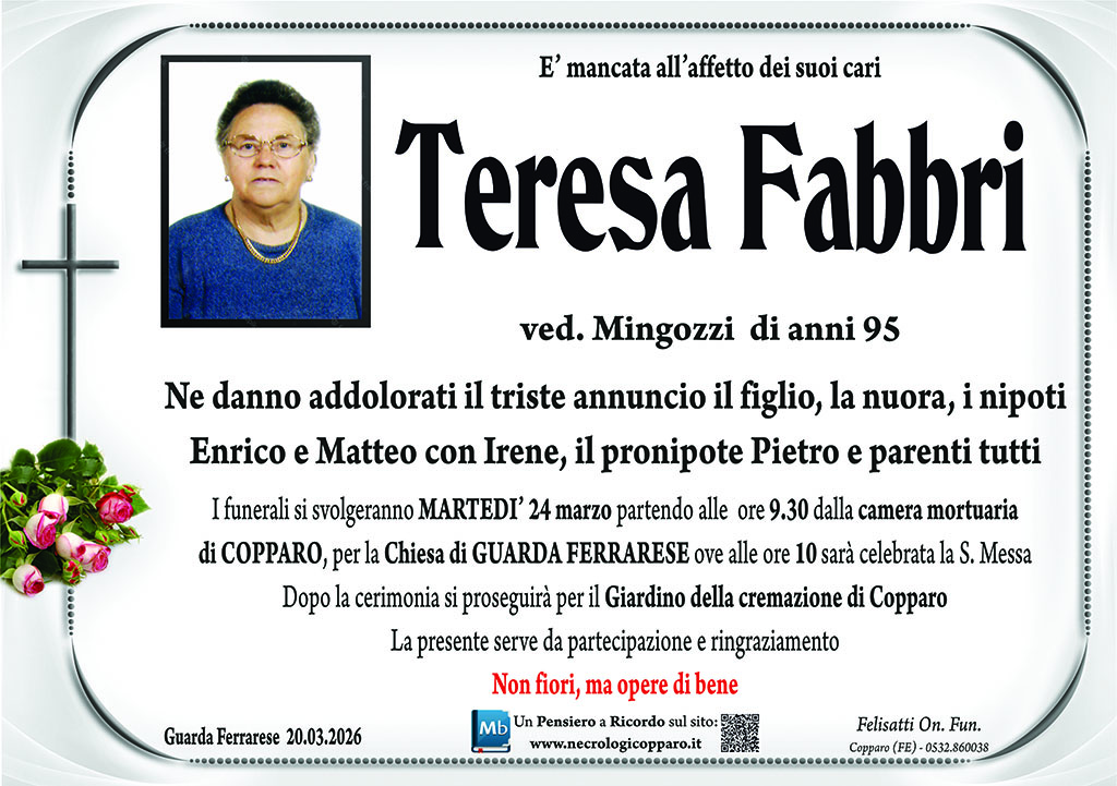 I familiari ringraziano anticipatamente tutti coloro che parteciperanno alla cerimonia funebre