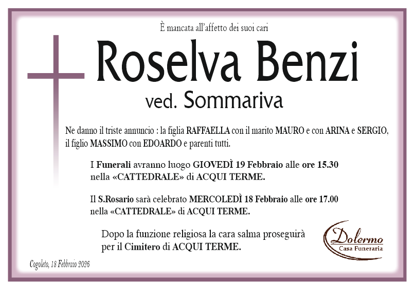 I familiari ringraziano anticipatamente tutti coloro che parteciperanno alla cerimonia funebre