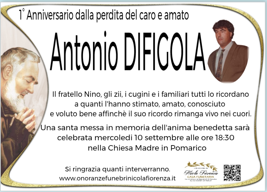 Le mie più sentite condoglianze alla famiglia difigola e in particolare al fratello Nino x la perdita del caro Antonio che r.i.p