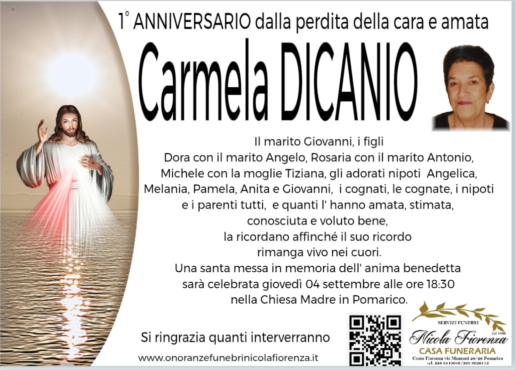Le mie più sentite condoglianze per la scomparsa della cara Carmela che il Signore la accolga tra le sue braccia R I. P.