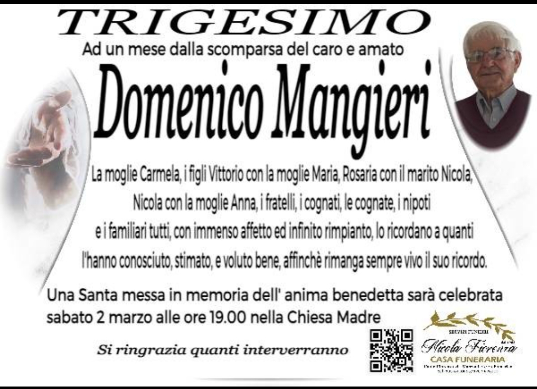 I familiari ringraziano anticipatamente tutti coloro che parteciperanno alla cerimonia funebre