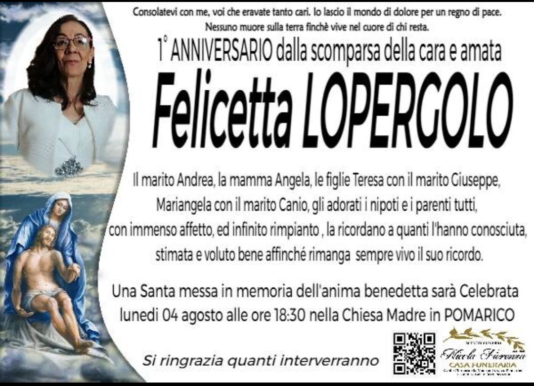 Le mie più sentite condoglianze per la scomparsa della cara felicetta che il Signore la accolga tra le sue braccia R. I. P.