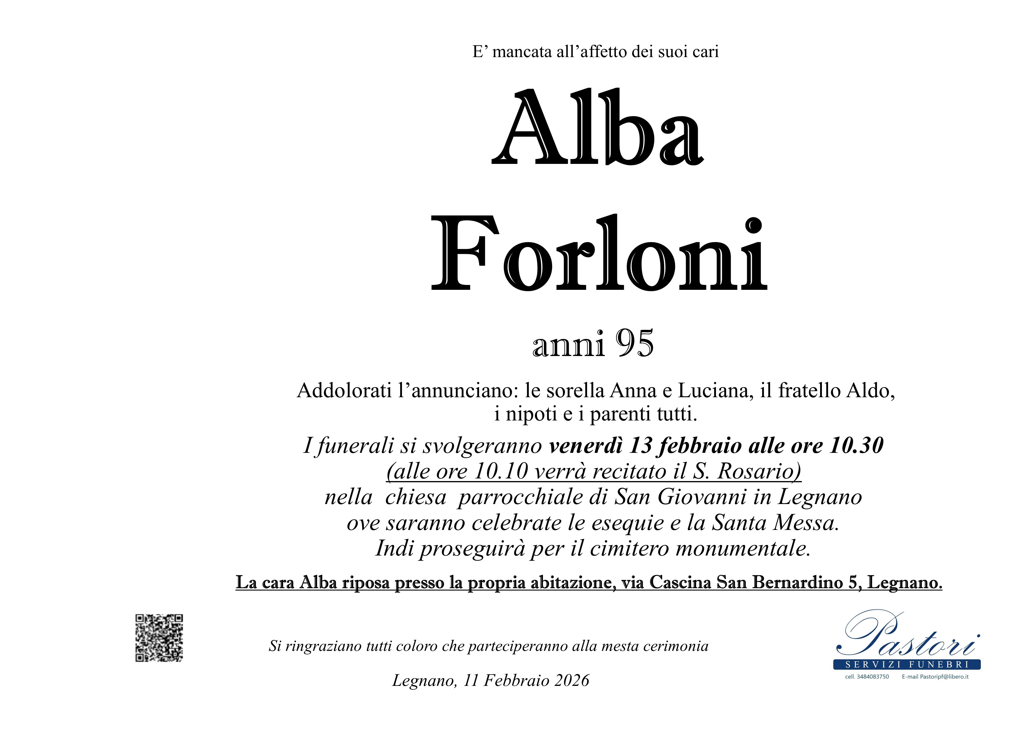 I familiari ringraziano anticipatamente tutti coloro che parteciperanno alla cerimonia funebre