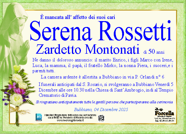 Increduli per la notizia, cara Serena fai buon viaggio, ci rivedremo. Un abbraccio alla famiglia, con tanto affetto siamo vicini a Marco, Luca ed Enrico. Condoglianze Clelia Andrea Giorgia e Sofia