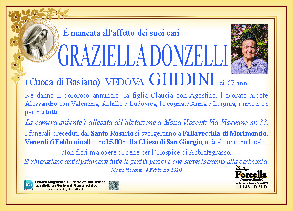 I familiari ringraziano anticipatamente tutti coloro che parteciperanno alla cerimonia funebre