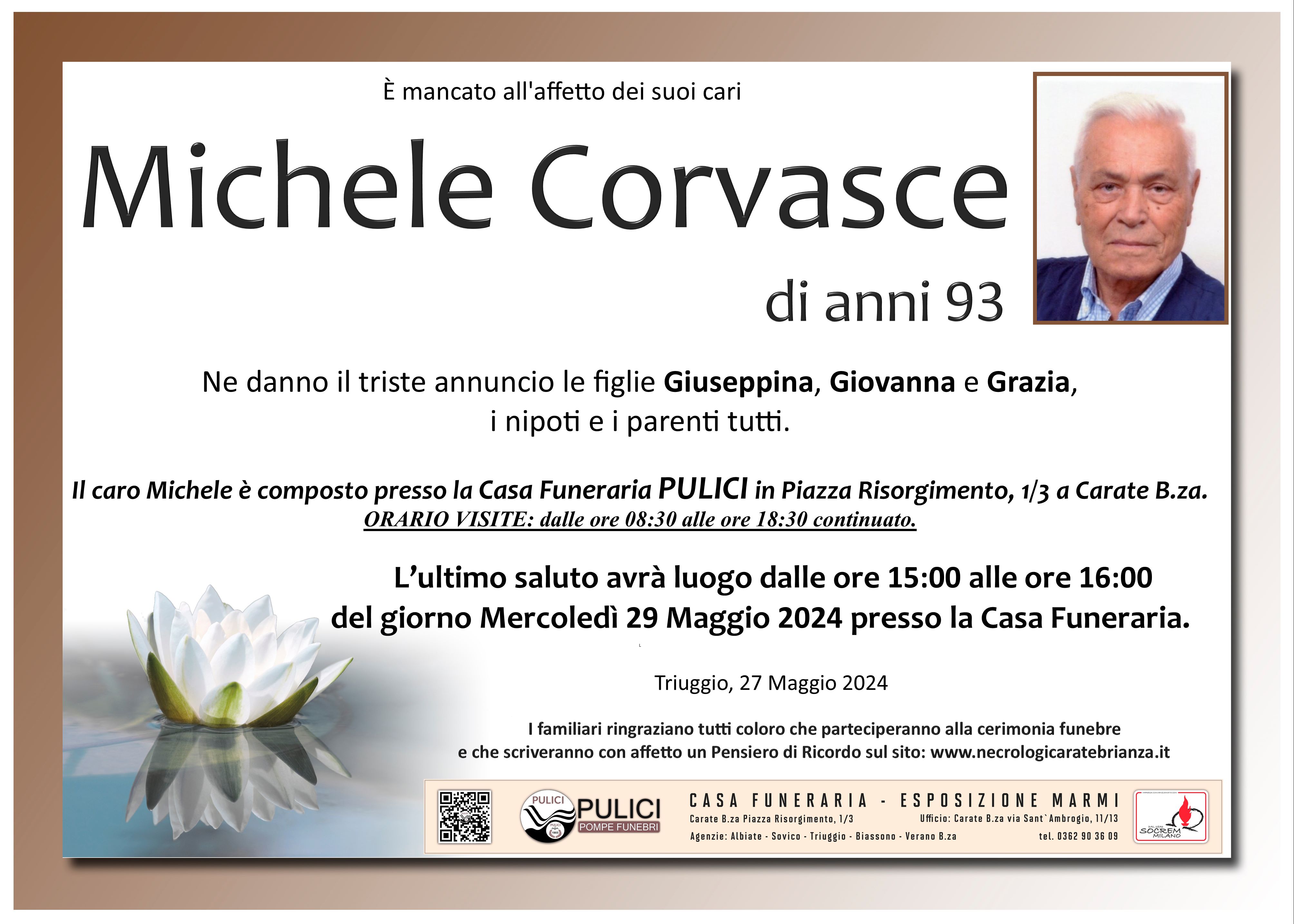 Clicca il pulsante qui sotto per visualizzare sulla mappa il luogo dove riposa Michele Corvasce.