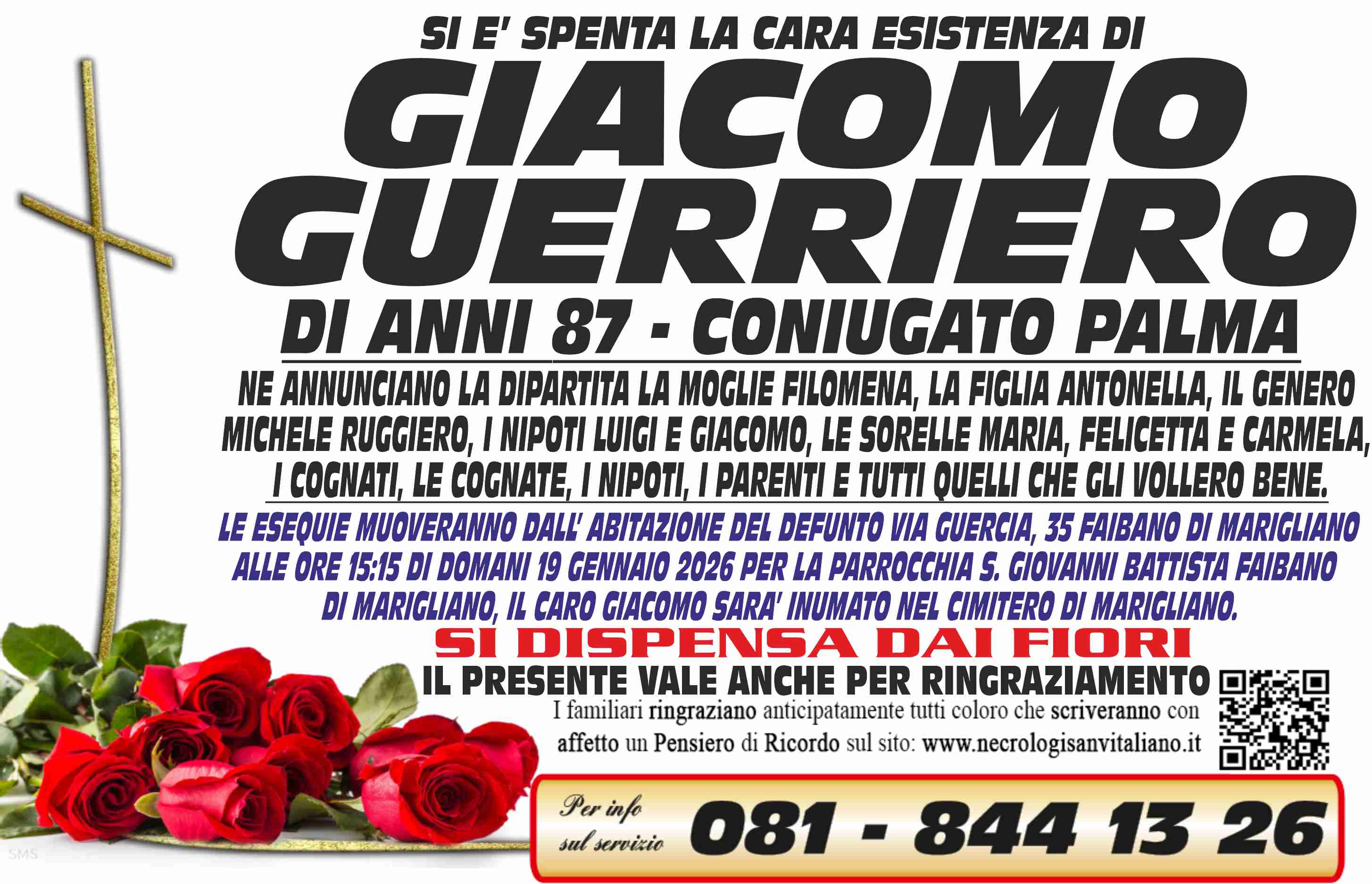 I familiari ringraziano anticipatamente tutti coloro che parteciperanno alla cerimonia funebre