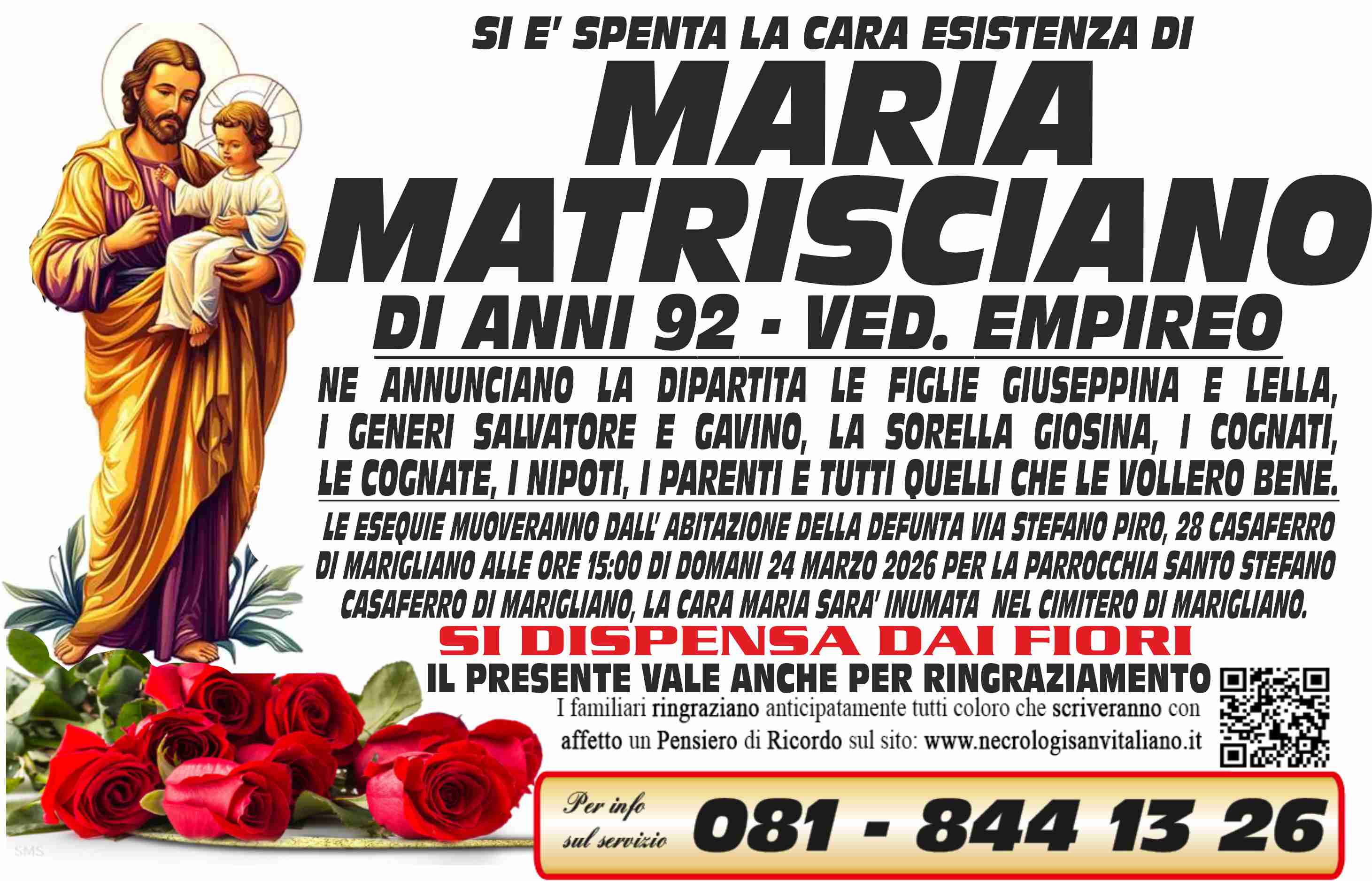 I familiari ringraziano anticipatamente tutti coloro che parteciperanno alla cerimonia funebre