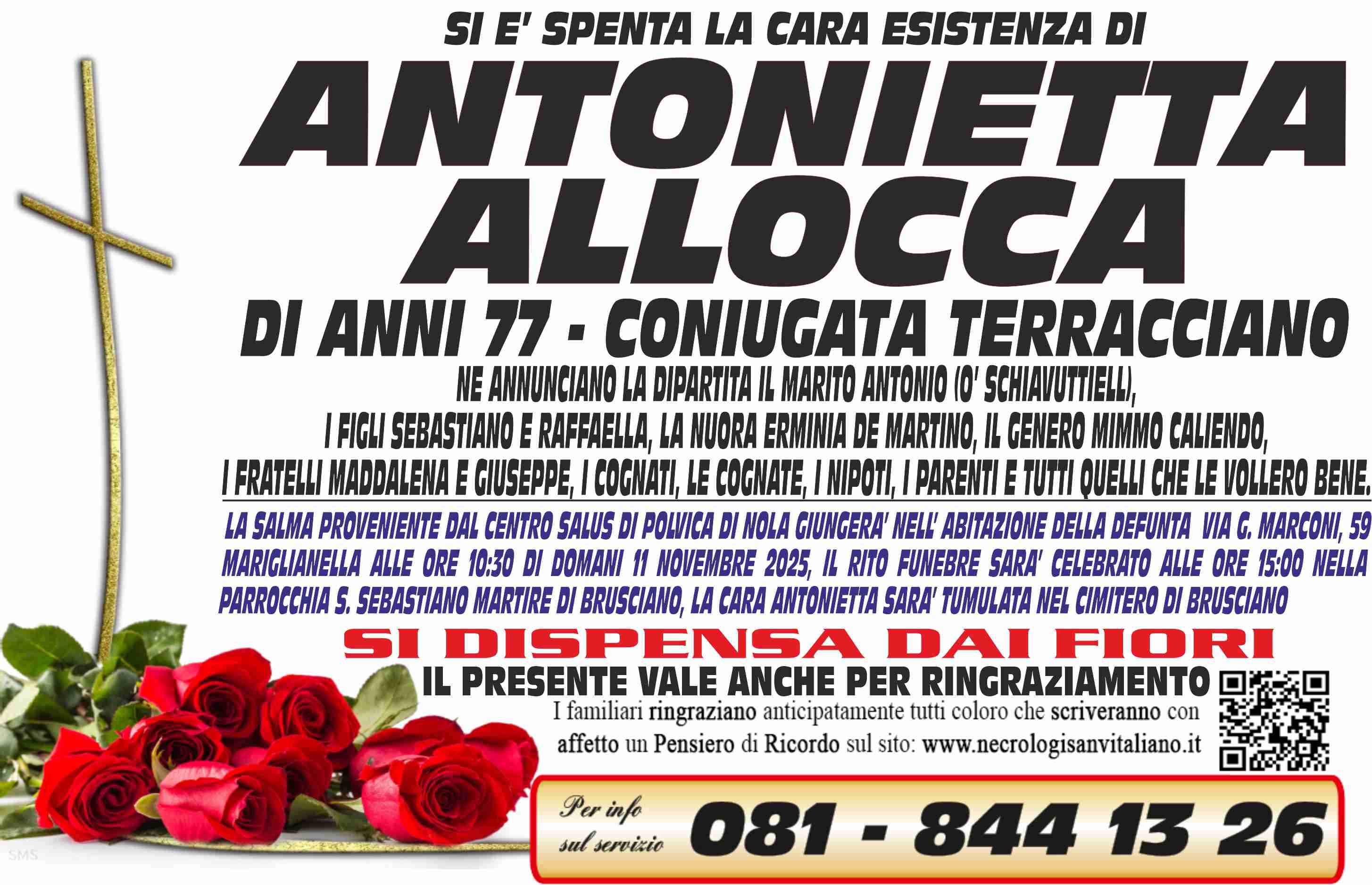 I familiari ringraziano anticipatamente tutti coloro che parteciperanno alla cerimonia funebre
